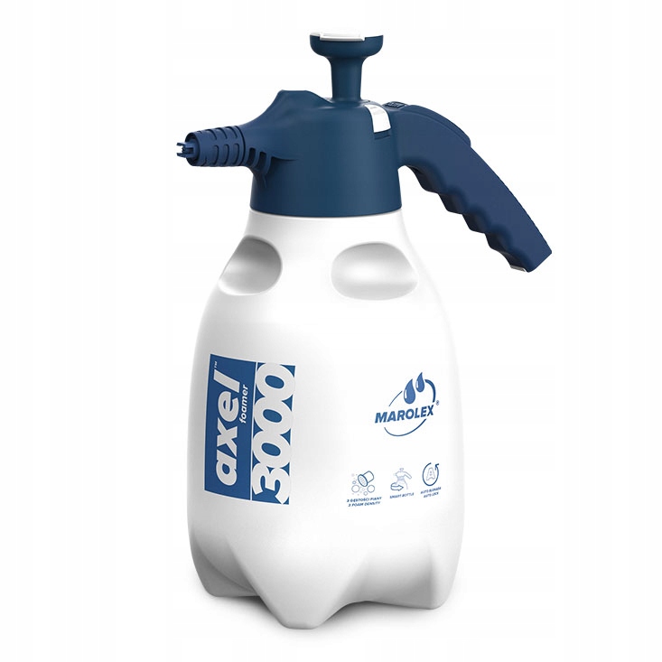 Marolex Axel 3000 – модель объемом 3 литра. Легкий и эргономичный дизайн обеспечивает комфорт во время использования, равно как и возможность блокировки спускового крючка и клапан, позволяющий быстро выпустить воздух из груши пенообразователя.