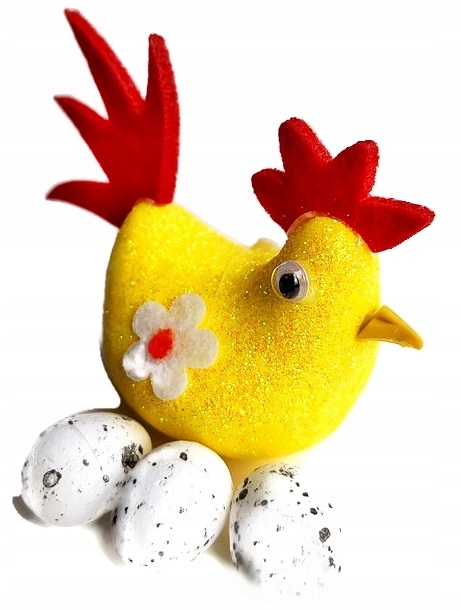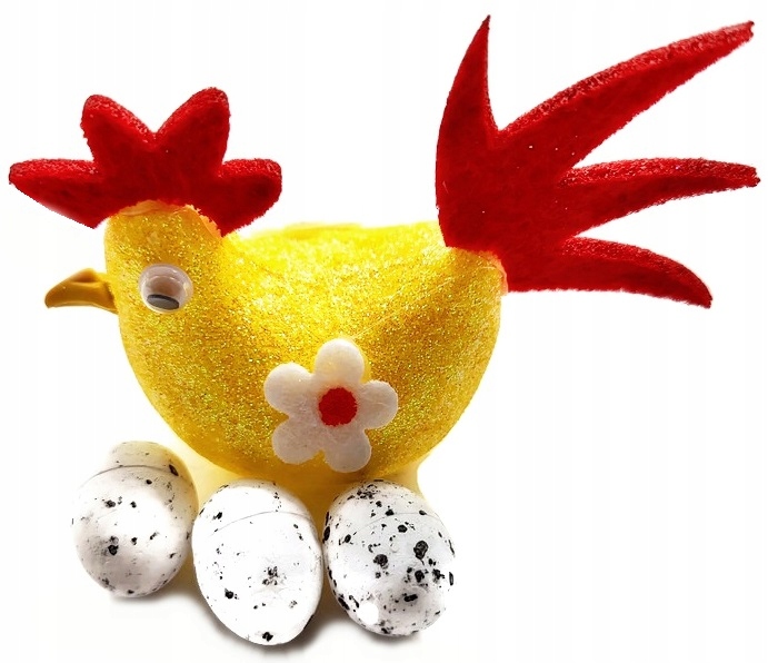 Петух из пенопласта – прекрасное украшение пасхального стола. Детализированная фигурка изготовлена ​​из качественного пенопласта, что обеспечивает долговечность и эстетичный внешний вид. Этот петух, окрашенный в выразительную расцветку, добавит очарования вашему интерьеру. В набор входят три яйца из пенопласта.