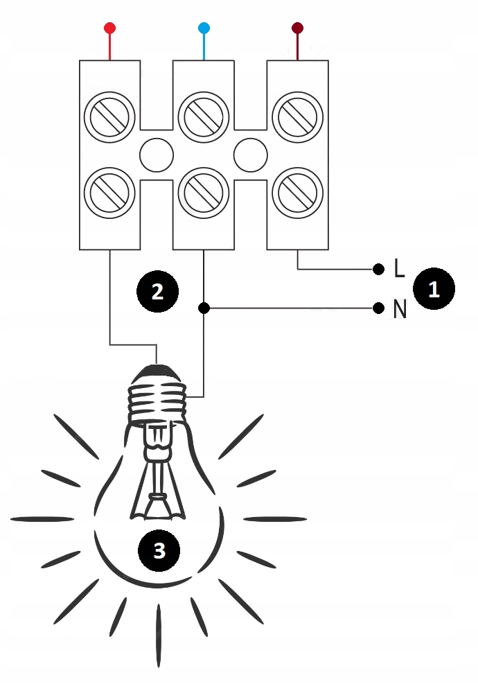 Подключите фазный кабель приемника к разъему, отмеченному как L' (красный) на клеммный блок.