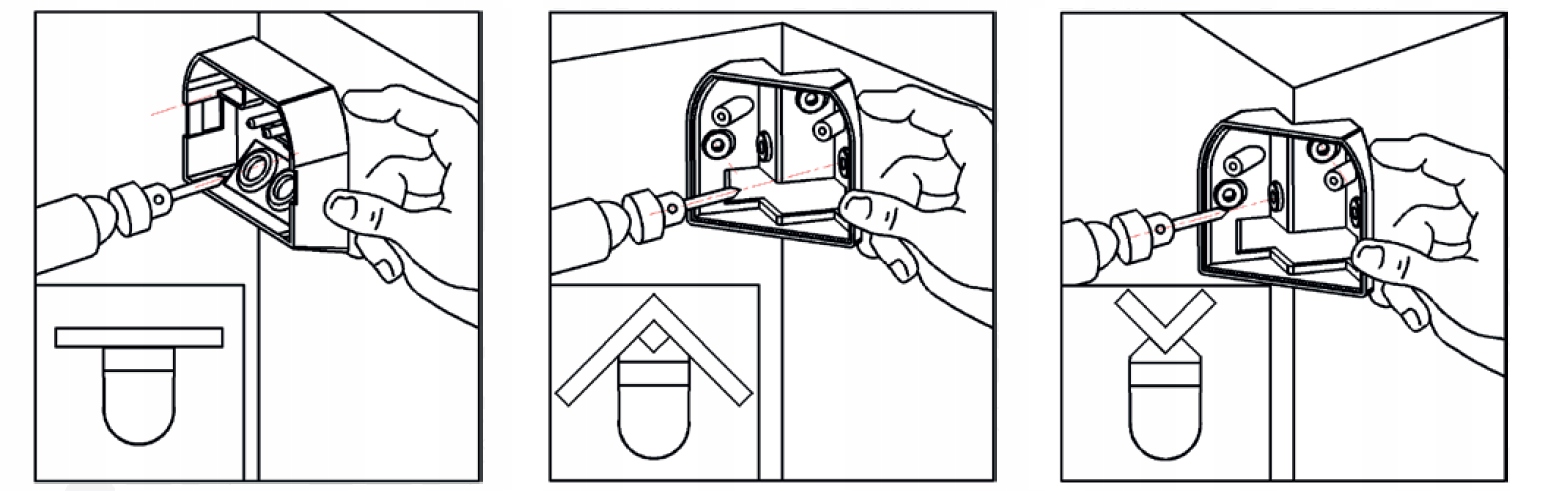 Датчик можно установить непосредственно на стену, а также прикрепить к внутреннему или внешнему углу стены с помощью прилагаемого адаптера.