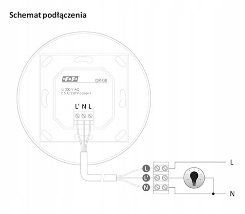 - Монтаж: двумя винтами на землю или в коробку скрытого монтажа Ø60