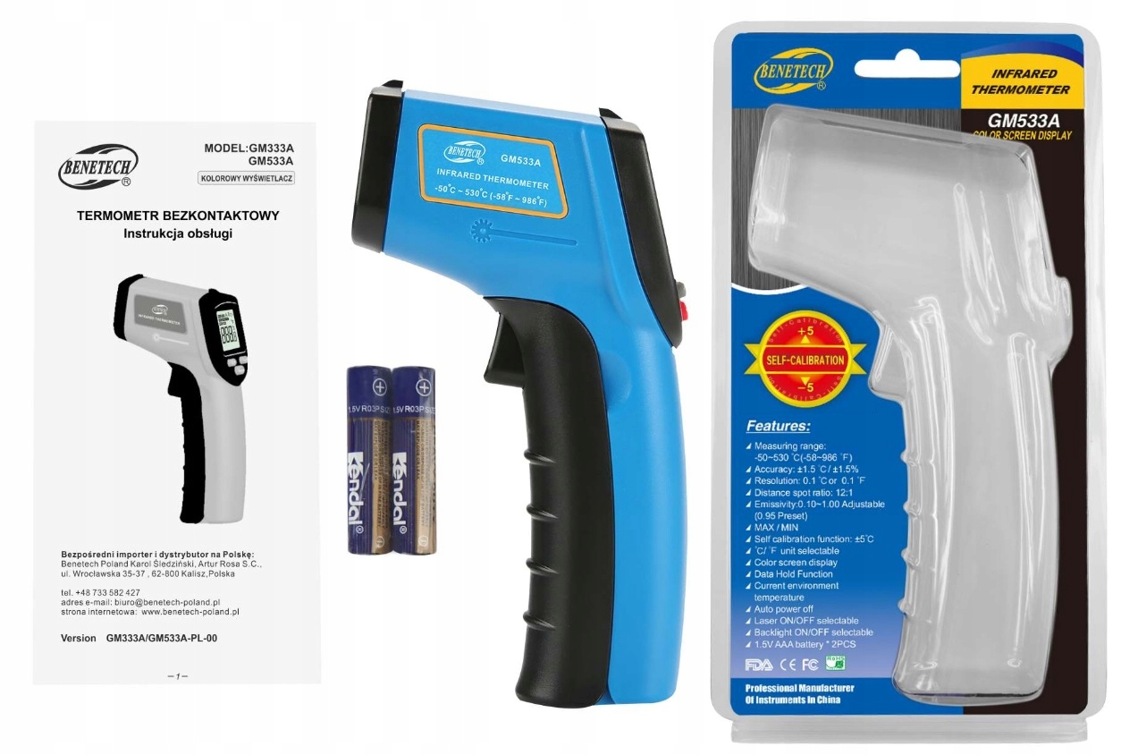 БЕСКОНТАКТНЫЙ ЛАЗЕРНЫЙ ТЕРМОМЕТР BENETECH GM533A ПИРОМЕТР (-50 +530°C)