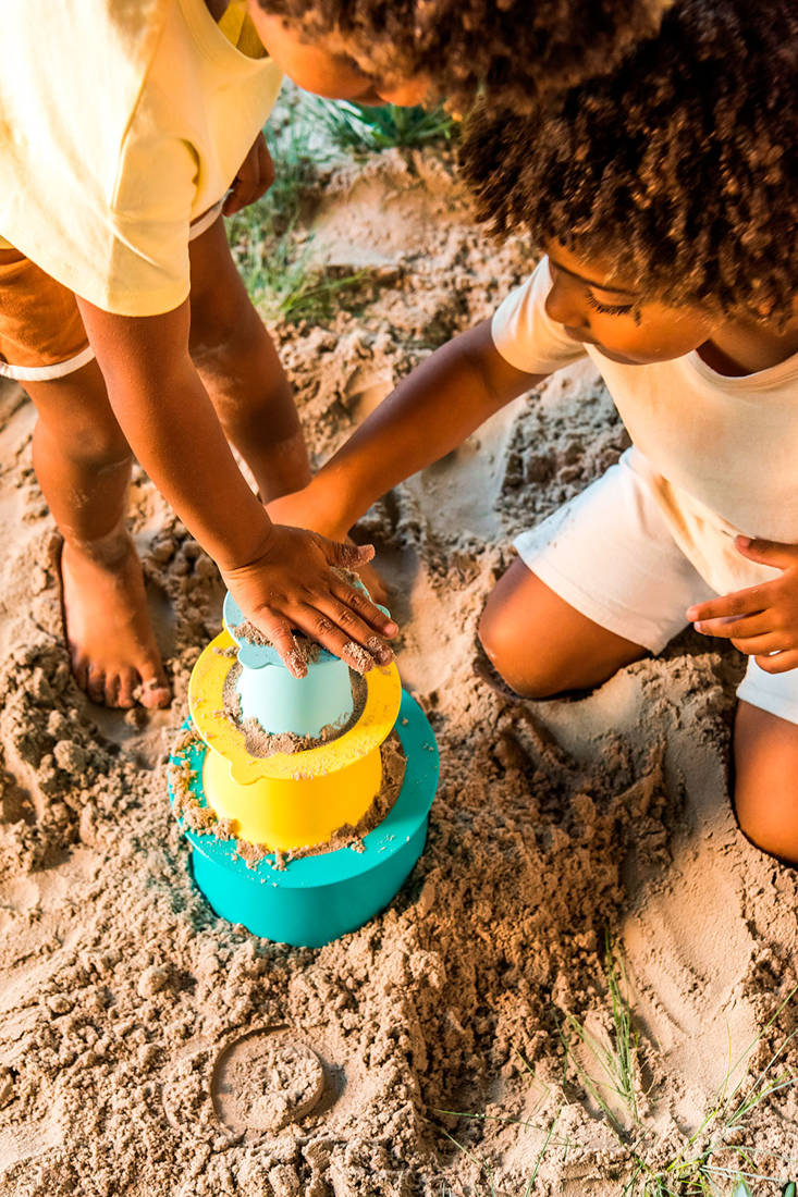 Набор форм для песчаной формы alto Tower бельгийского бренда Кварт привлекает внимание оригинального дизайна и оригинальных цветов . Набор состоит из 3 частей - высоких дисков с более широкими краями, разных диаметров и разных цветов. Он был вдохновлен профессиональными инструментами для строительства из песка . Больше не нужно носить несколько ведер на пляж, похлопывать и поворачивать - этих форм достаточно, чтобы поставить одну на другой, наполнить его до краев, а башня готова! С их использованием вы можете построить не только многоуровневые здания, но и все, что воображение говорит вашему ребенку. Они гарантируют интеллектуальную деятельность на открытом воздухе и круглый год. Они будут работать не только для игры в песке, но и в воде, снегу или саду. Подходят для создания кинетических песчаных структур
