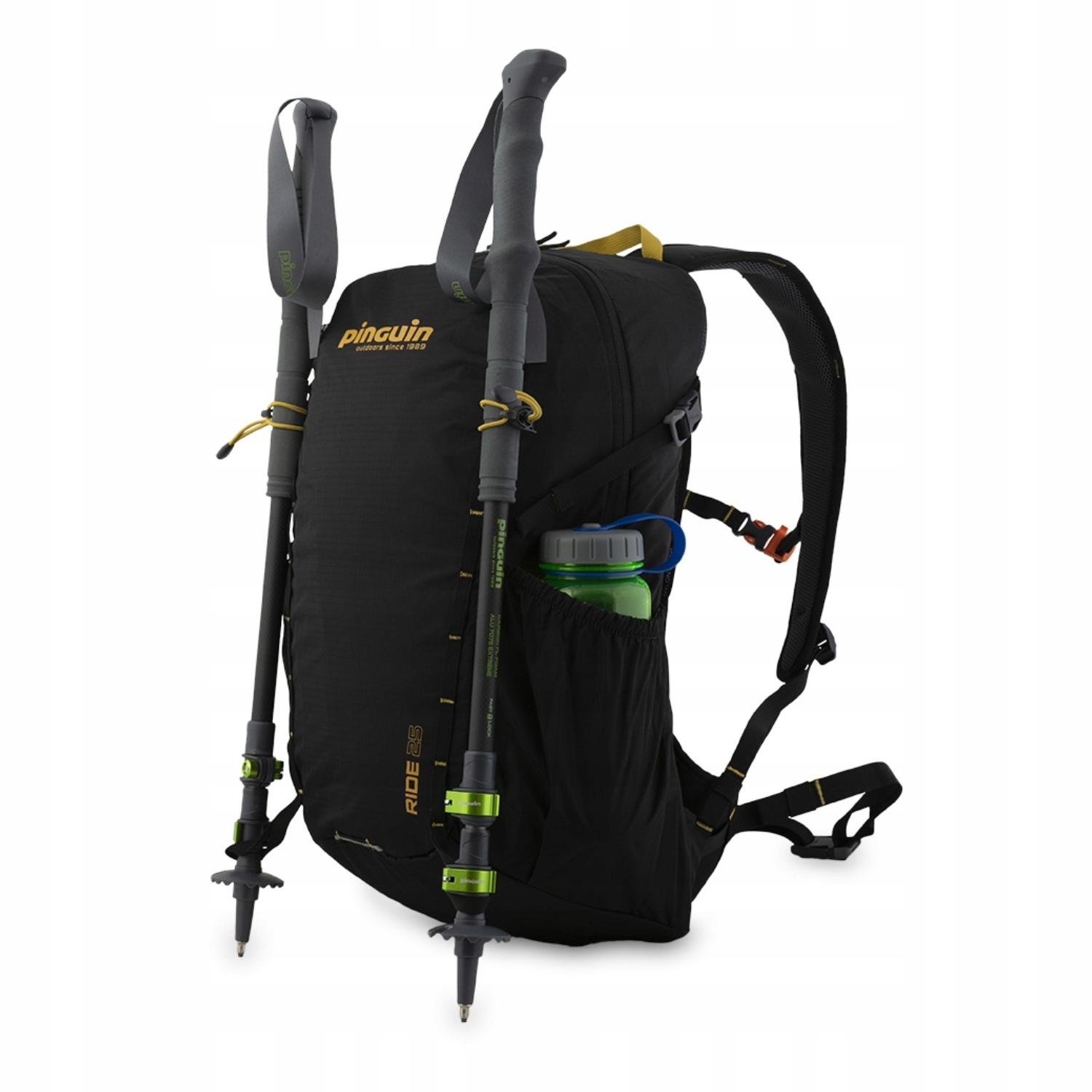 Penguin Ride 25, будучи спортивным рюкзаком, также имеет практичные детали, такие как: крепление для треккинговых палок, боковые ремни и крючок для освещения. Благодаря этому вы также можете использовать его как рюкзак для бега или велосипедный рюкзак. При резкой перемене погоды достаточно достать дождевик из нижнего кармана, и ваш рюкзак будет защищен от воды. Для людей, ценящих практичность и функциональность, важным элементом оснащения рюкзака станет плоский карман для водного пузыря, позволяющий пить воду без остановки.
