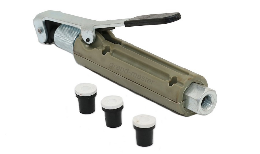 Комплект, содержащий пескоструйный пистолет и 4 насадки с резиновым покрытием, повышающим их устойчивость к внешним факторам. Этот пистолет очень часто используется в сифонных пескоструйных аппаратах 19Л, 38Л, 76Л, 80Л.