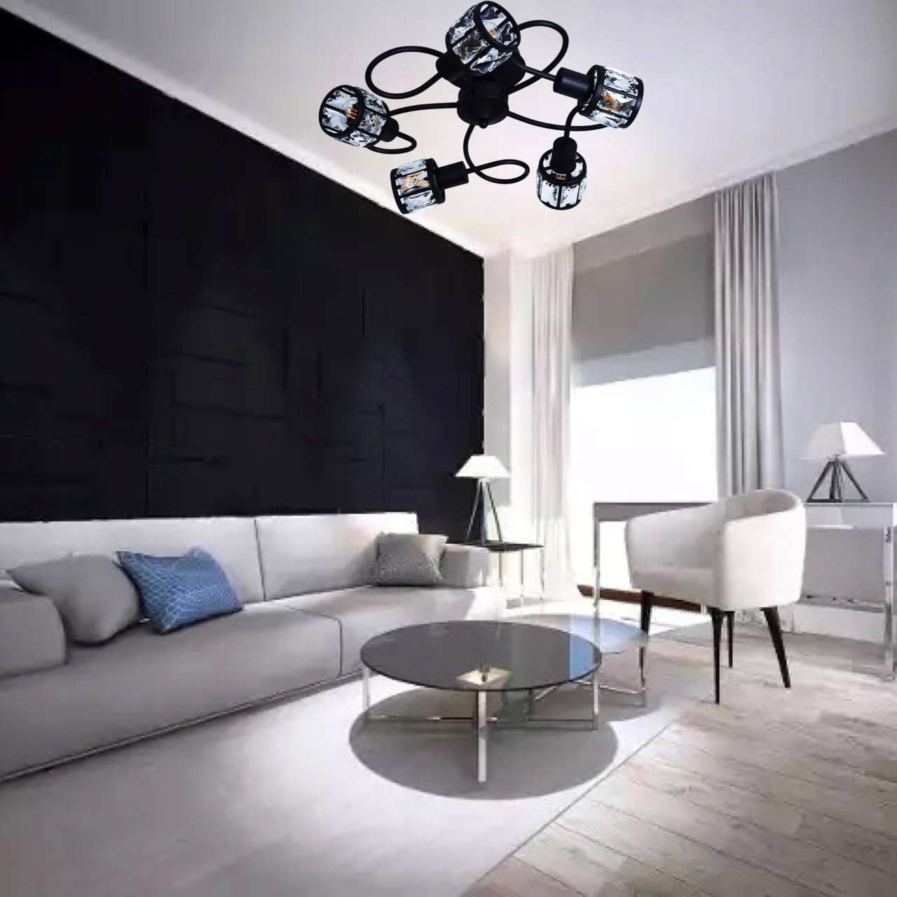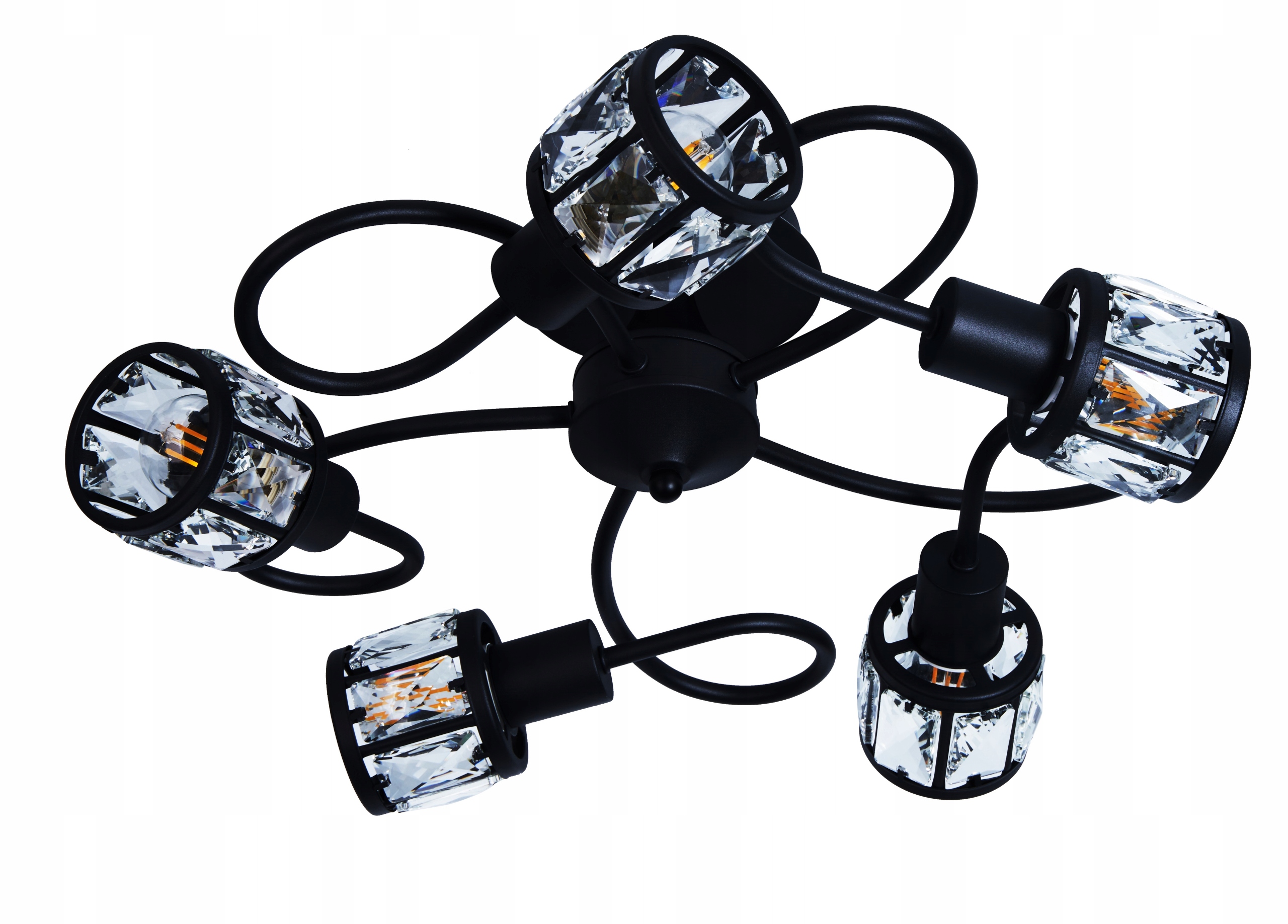 Потолочный светильник VENUS — это элегантное освещение, которое идеально подходит для холла, гостиной или спальни. Металлическое основание, окрашенное в черный цвет, выглядит очень эстетично, а все это дополняется хрустальными абажурами традиционной формы.