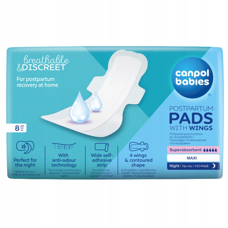 Прокладки послеродовые Canpol Babies, созданные специально для женщин в послеродовой период. Тонче и незаметнее, чем традиционные послеродовые прокладки, но столь же впитывающие и дышащие. Разработанные специально для женщин в послеродовой период, они обеспечивают гораздо лучшую защиту, чем обычные гигиенические прокладки. Ультравпитывающий вкладыш быстро впитывает жидкость и удерживает влагу внутри, обеспечивая длительное ощущение сухости и комфорта. Мягкий верхний слой подушечки нежен для кожи и обеспечивает полную воздухопроницаемость. Гигиенические прокладки длиной 42 см отрегулированы таким образом, чтобы обеспечить эффективную защиту от протеканий даже в положении лежа. Несмотря на то, что их толщина составляет всего 2,2 мм, послеродовые прокладки Canpol baby гарантируют до 100% защиту от протеканий, сохраняя при этом незаметность ношения.