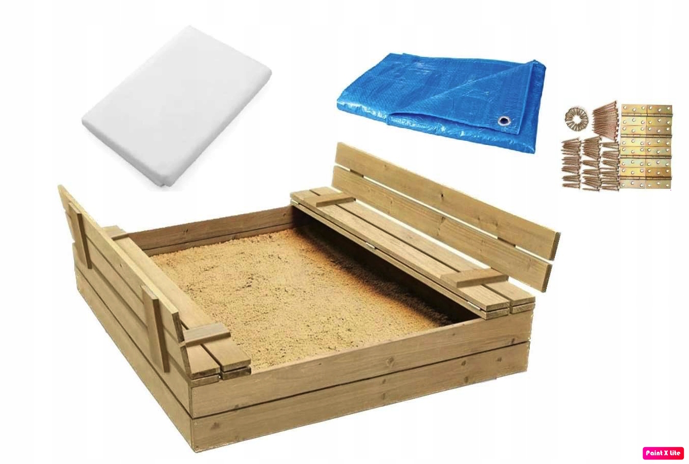 ПІСОЧНИЦЯ 120Х120 ДЕРЕВ'ЯНА, СКЛАДНА З ЛАВКАМИ + БЕЗКОШТОВНІ ПОДАРУНКИ