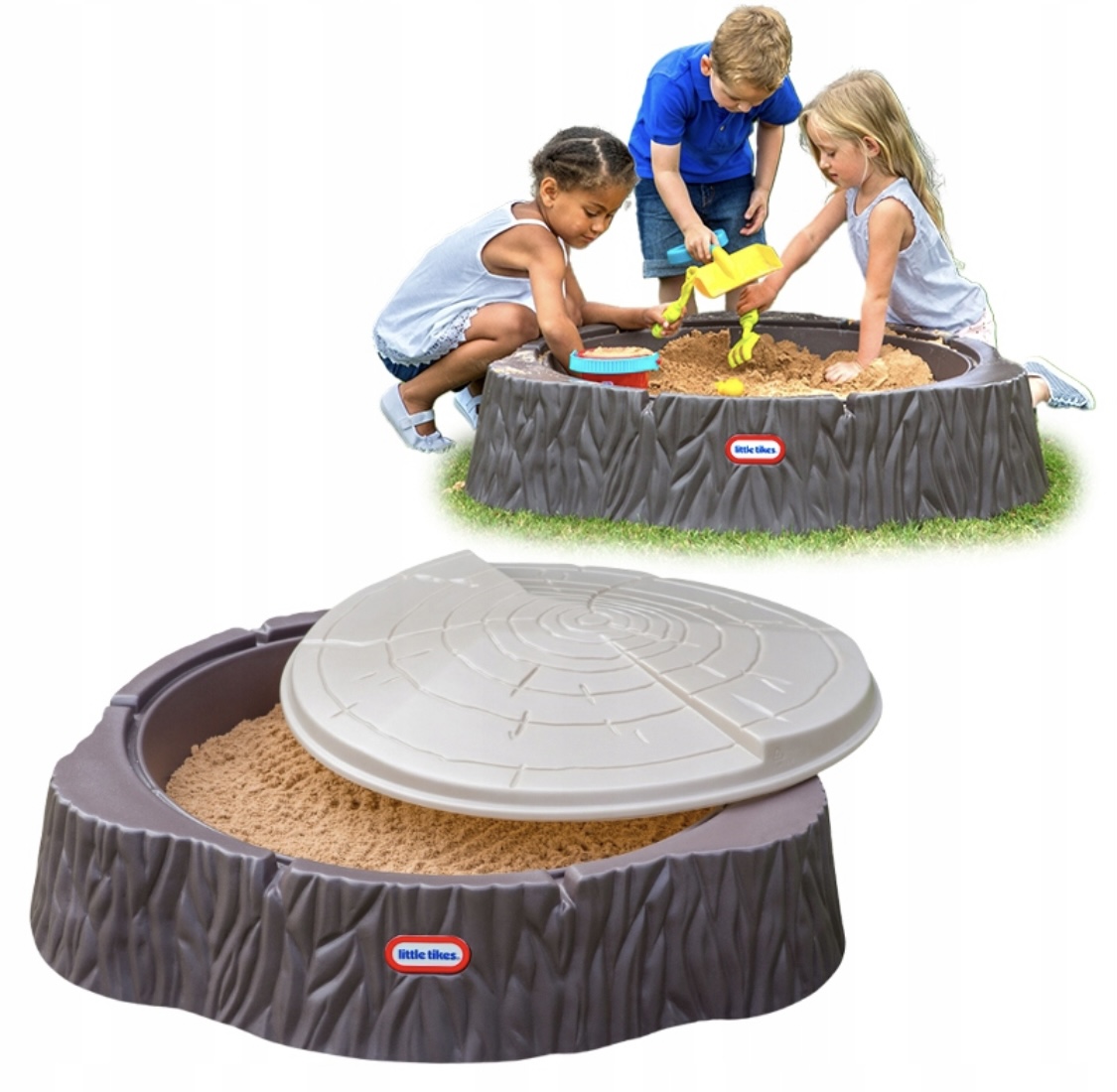 Легкое покрытие защищает песок от грязи и осадков, а его конструкция позволяет воде стекать. Благодаря этому песочницу можно использовать и как место для хранения игрушек.