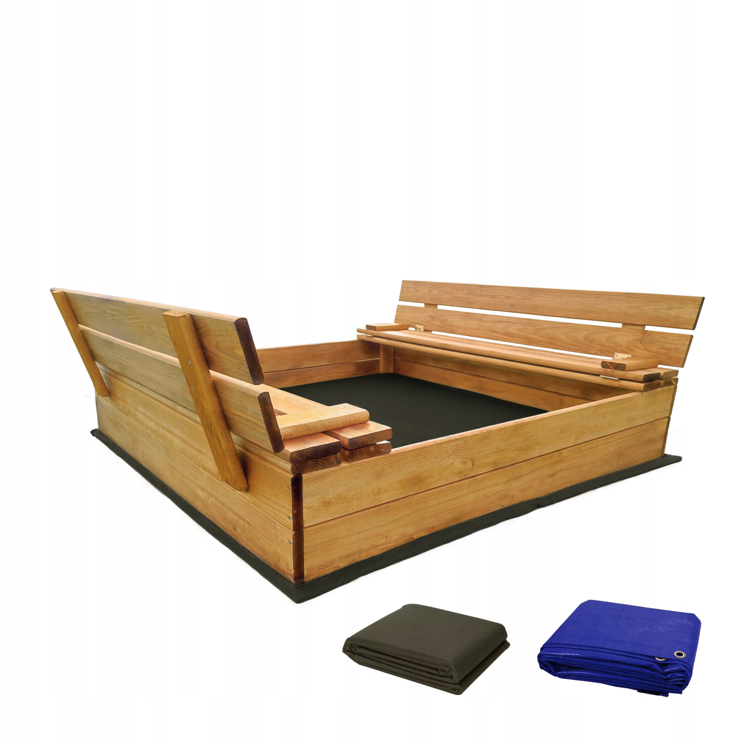 ДЕРЕВ'ЯНА ПІСЧНИЦЯ ПРОСОКОВАНА, ЗАКРИТА, ЛАВКИ 120 Х 120 СМ, Бонуси