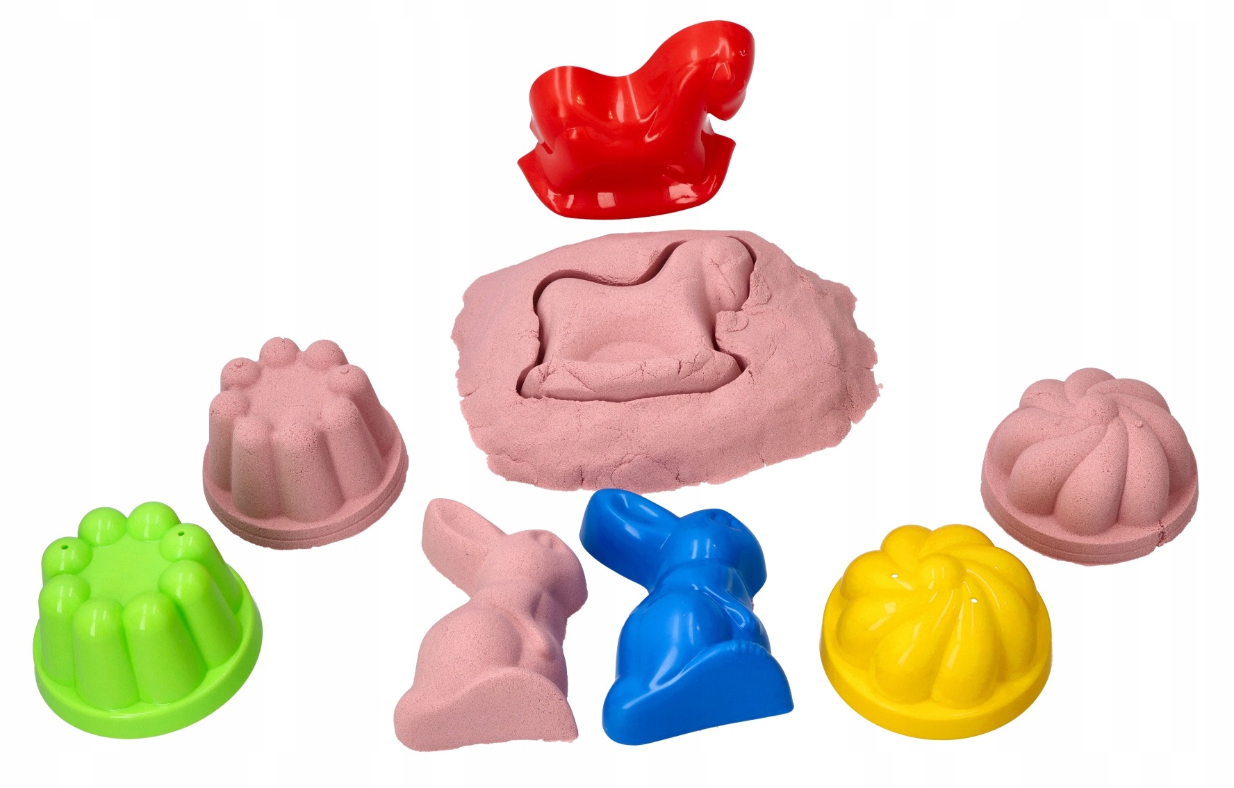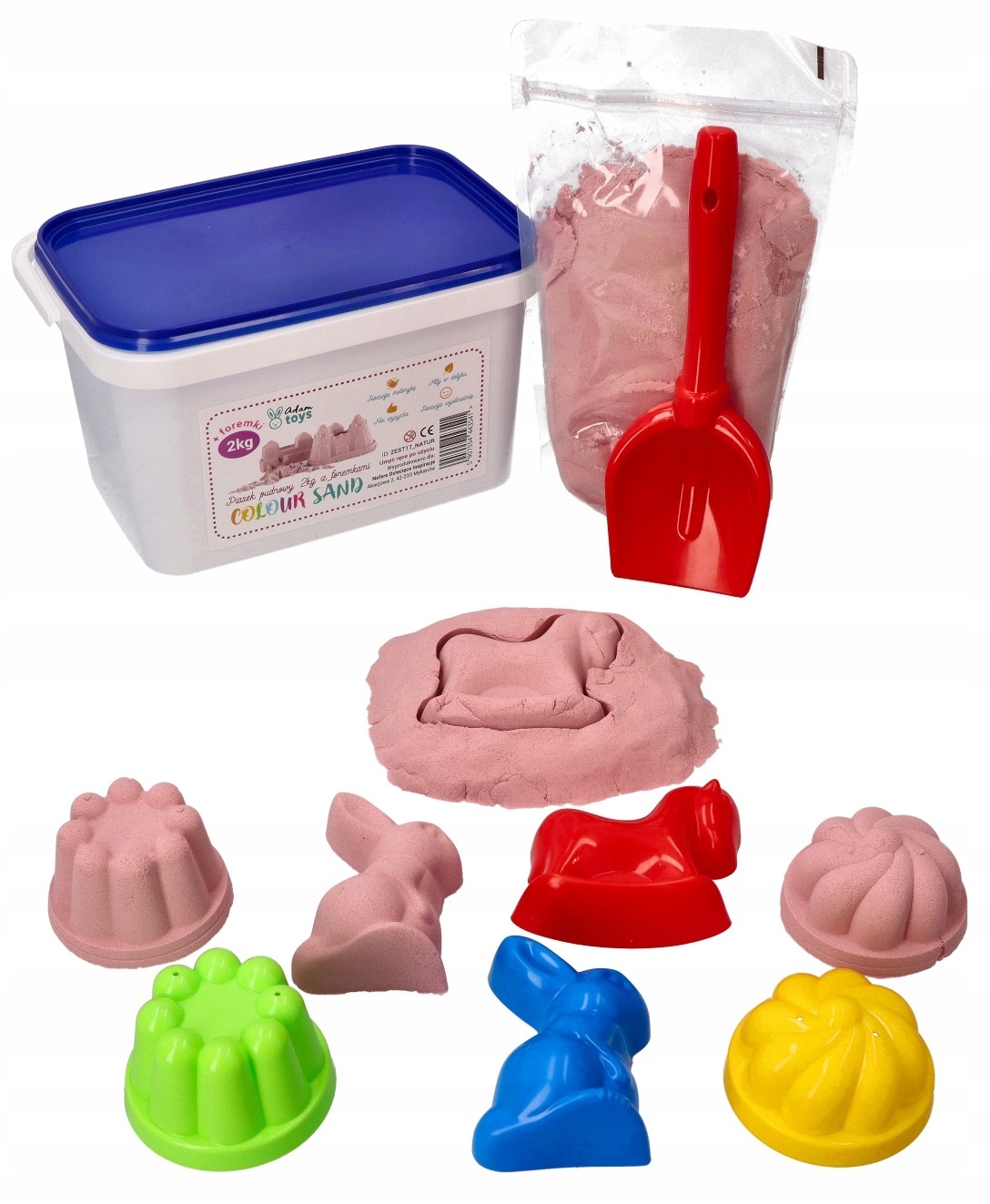 Набор кинетического песка в совершенно новых цветах!! Своими руками из песка можно формировать любые формы и узоры, что положительно скажется на развитии творческих способностей и воображения ваших детей. Дети любят играть с мокрым песком на пляже. Благодаря этому красочному песку Adam Toys вы почувствуете себя как дома, как в отпуске. Кроме того, в набор входят классические формочки для изготовления песочных лепешек и две формочки с изображением милых животных - зайчика и лошадки. В комплект также входит лопатка, благодаря которой можно играть с песком, не касаясь его непосредственно руками. Тем не менее, мы рекомендуем играть руками, так как прикасаться к песку и придавать ему форму руками очень полезно.