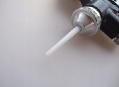 Силиконовый пистолет, используемый для герметизации швов от 300 до 320 мл пластиковых картуч. Из -за регулируемой крышки сопла, количества материала и регулируемого распыления воздуха, можно распылить различные конструкции. При использовании прикрепления сопла 6.5 и набора пластиковых форсунок материал может быть нанесен на шарики различных крестов.