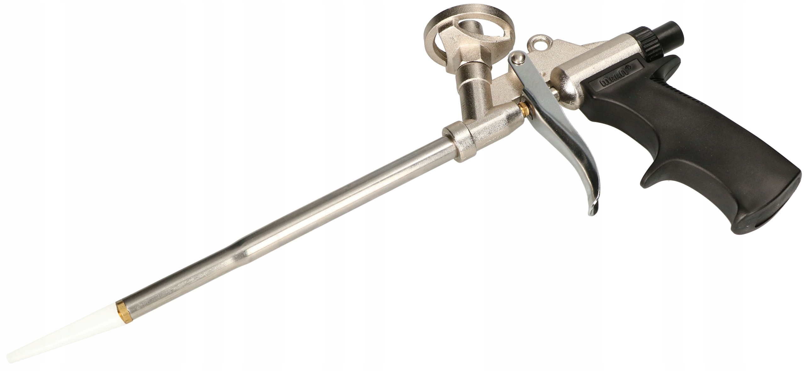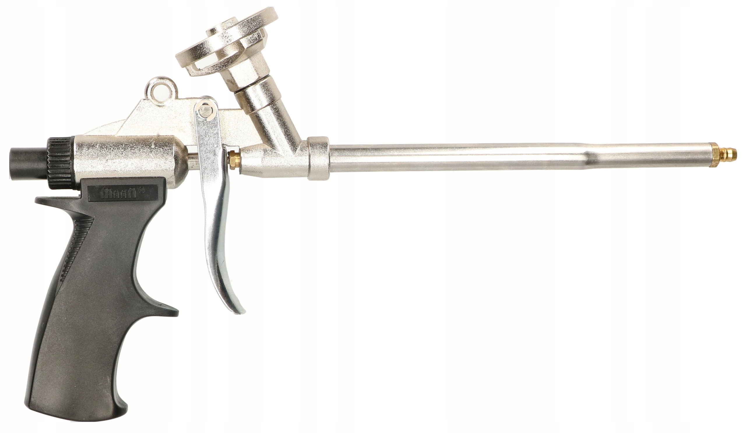 - Точная ручка подачи пены и закрытия пистолета позволяет завершить работу в любой момент, а без доступа воздуха пена не затвердевает.