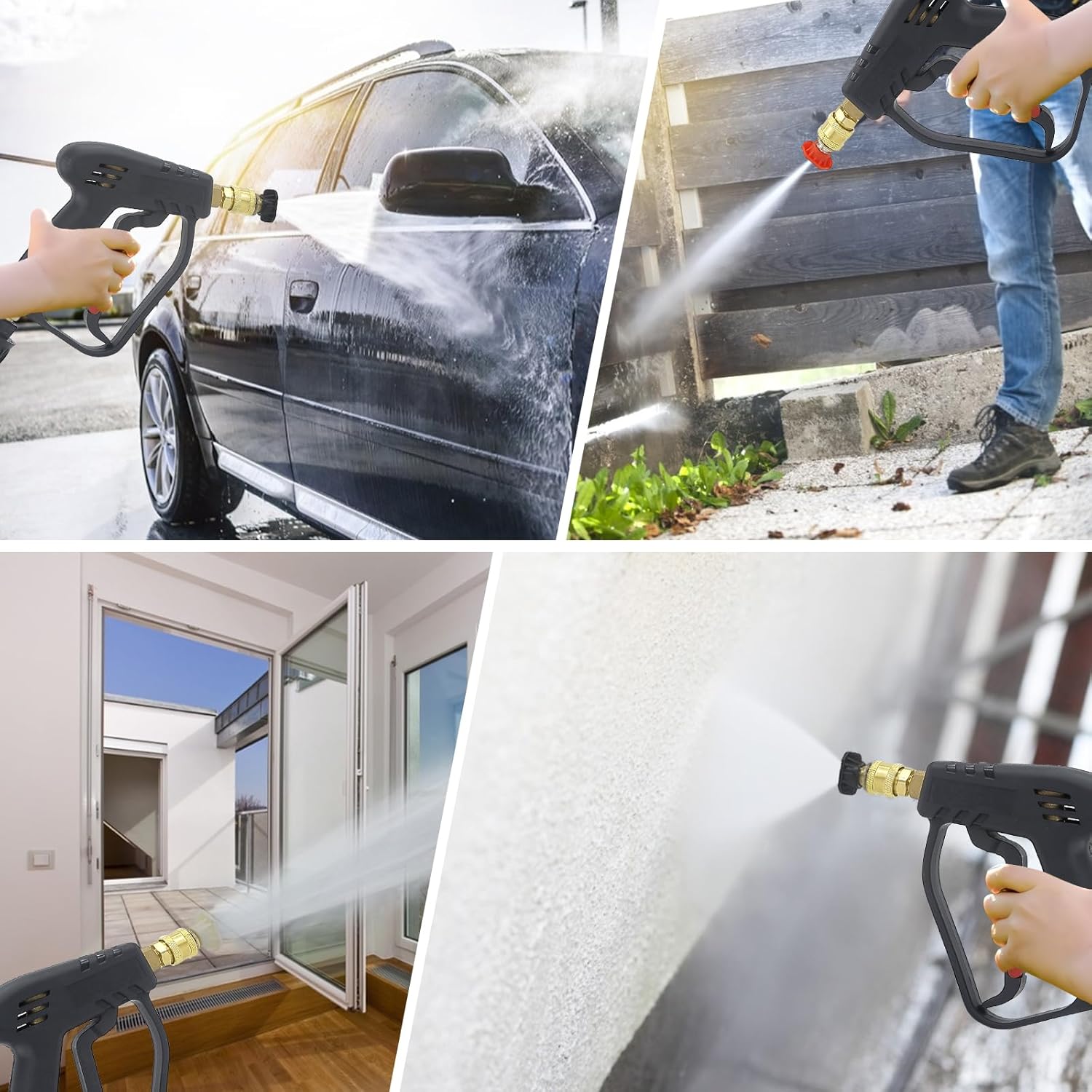 🔫🔫🔫 【Прочный материал】 Очистка высокого давления легко удаляет грязь с поверхности автомобиля, а также является полезным инструментом для очистки двора. Высокопрофильное очищающее пистолет изготовлен из прочного пластика и его интерьера латуни и нержавеющей стали.