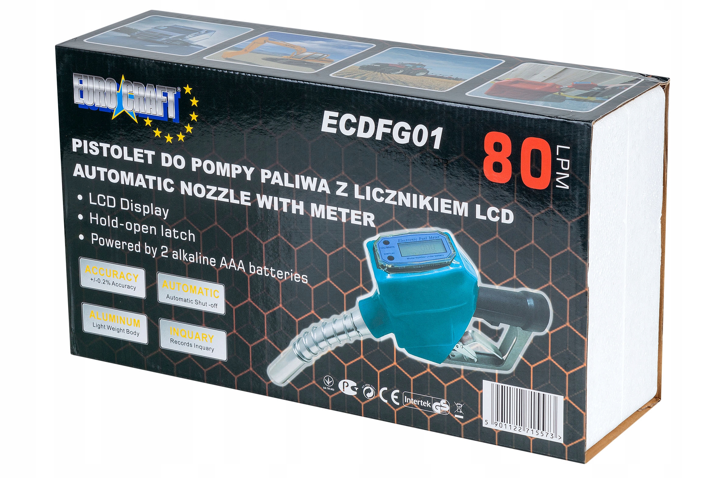 Современный и профессиональный пистолет ECDFG01 для топливных насосов (мини-CPN), оснащенный точным электронным счетчиком расхода и ЖК-дисплеем. p>