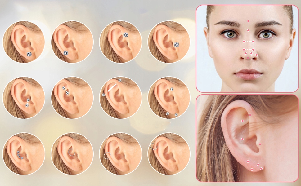 【Универсальное использование】Набор пистолетов для прокалывания ушей и носа подходит для использования в салоне для прокалывания ушей или дома. , его можно использовать на различных частях тела, таких как уши, нос и пупок, что обеспечивает быстрый пирсинг и простоту эксплуатации.