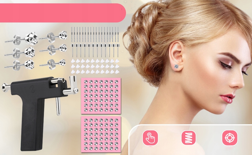 【Быстрый и легкий пирсинг】Домашний набор для прокалывания ушей позволяет быстро и легко проколоть отверстия в ушах. Аккуратно нажмите на спусковой крючок, и прокалывание ушей будет завершено очень быстро. время. (PS: Для точного прокалывания серьга должна располагаться прямо в отверстии для пирсинга)