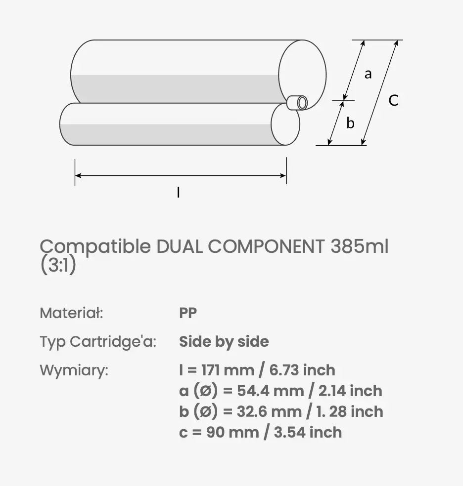 Соковыжималка предназначена для использования с эпоксидными клеями и химическими анкерами емкостью 385 мл и соотношением смешивания 3:1.