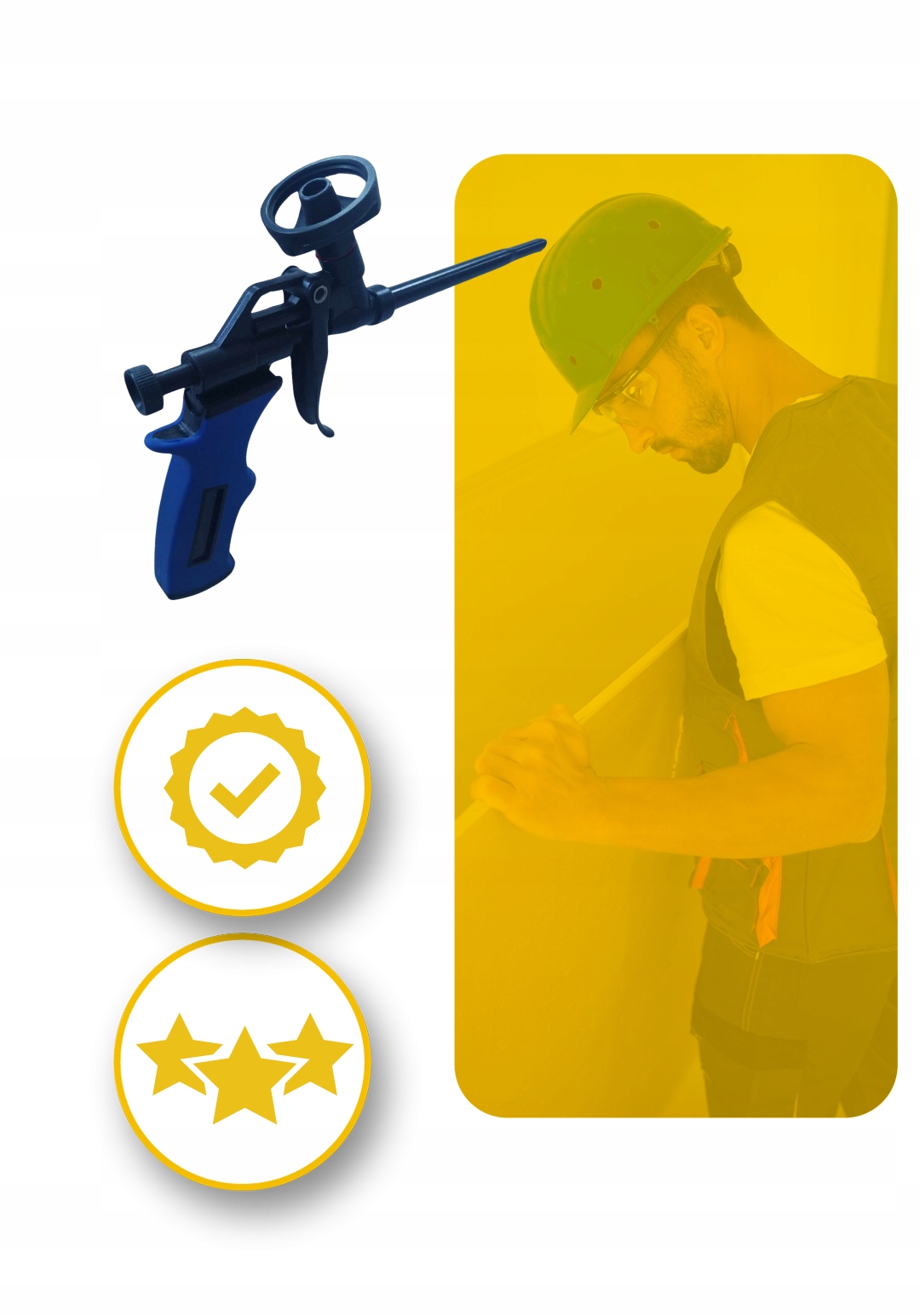 - Точная дозировка: Оснащен ручкой, позволяющей точно дозировать пену.