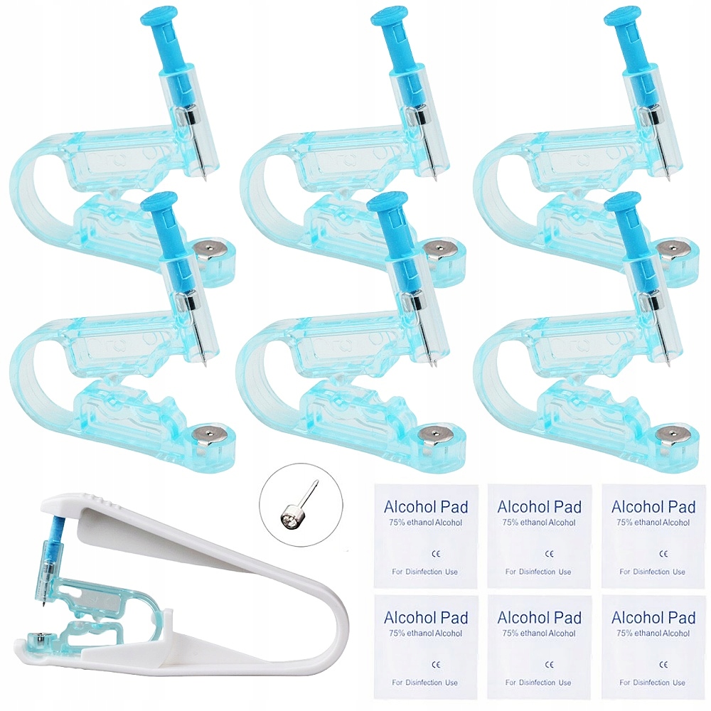 - 6 одноразовых приспособлений для прокалывания ушей (каждый пистолет для пирсинга со встроенной серьгой)