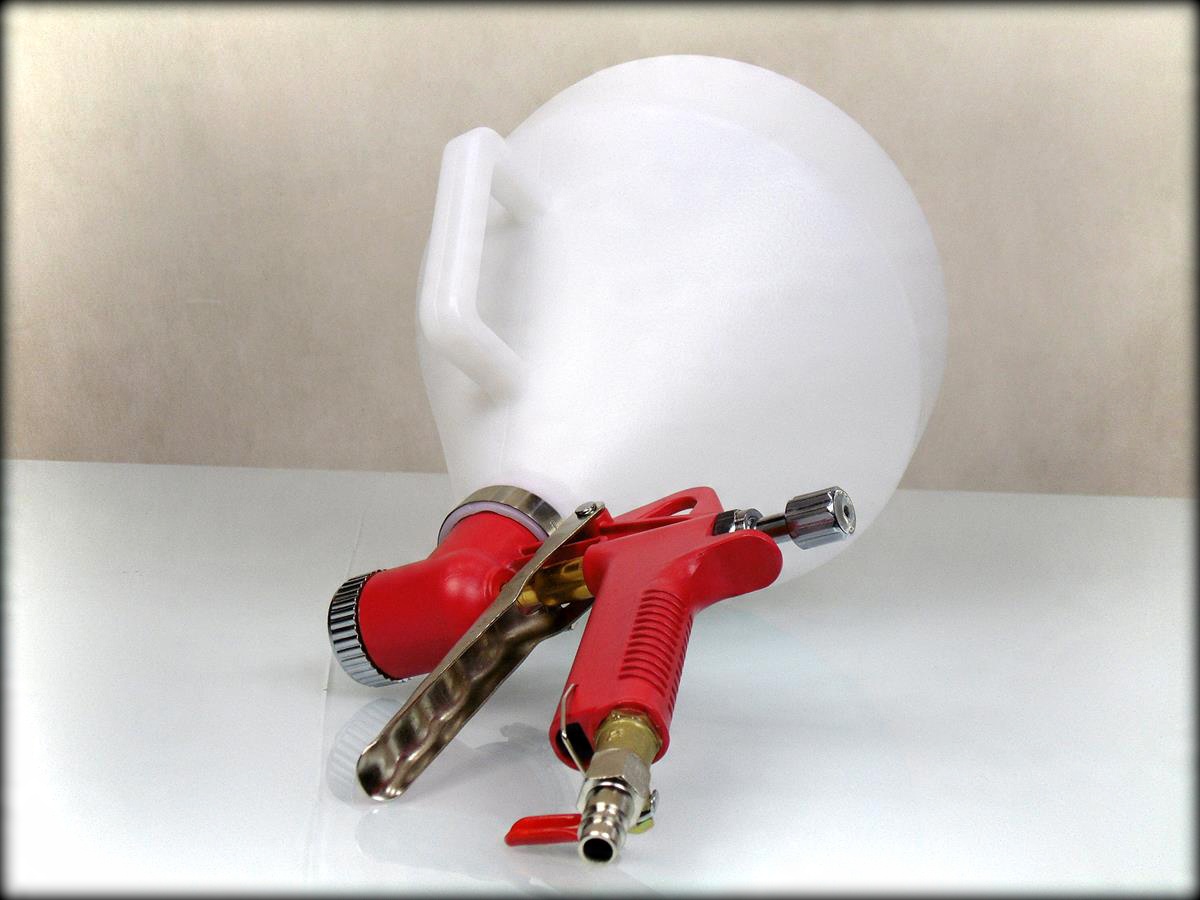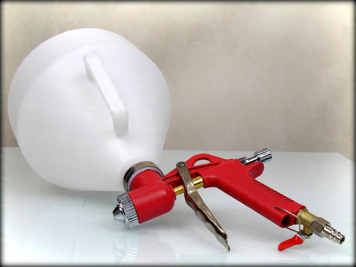 Пистолет можно использовать для покраски эмульсионными и клеевыми красками. Идеально подходит для нанесения штукатурок и гипсовых штукатурок, с его помощью можно создавать фактуры, т.е. так называемую «барашек» на стене при нанесении акриловой штукатурки на фасад зданий с утеплением. Также используется в хозяйствах для окраски известью конюшен, сараев и подсобных помещений. Контейнер пистолета наполовину закрыт, что позволяет красить потолки.Прибор оснащен шаровым краном, позволяющим регулировать давление воздуха.