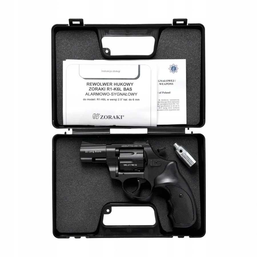 Зораки R1-K6L BAS классифицируется как сигнальное и сигнальное оружие (BAS) и не требует разрешения — законного владения достаточно, если вы достигли совершеннолетия. В комплект входит транспортировочный кейс, насадка для развальцовки, руководство пользователя и сертификат BAS, обеспечивающий полную готовность к безопасному использованию сразу после покупки.