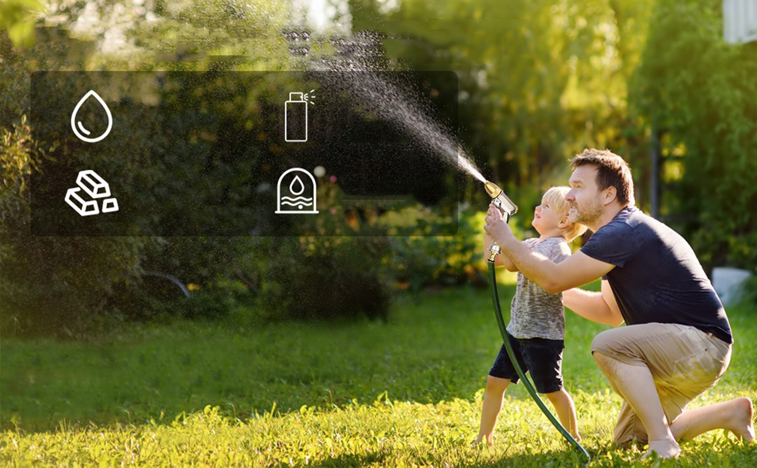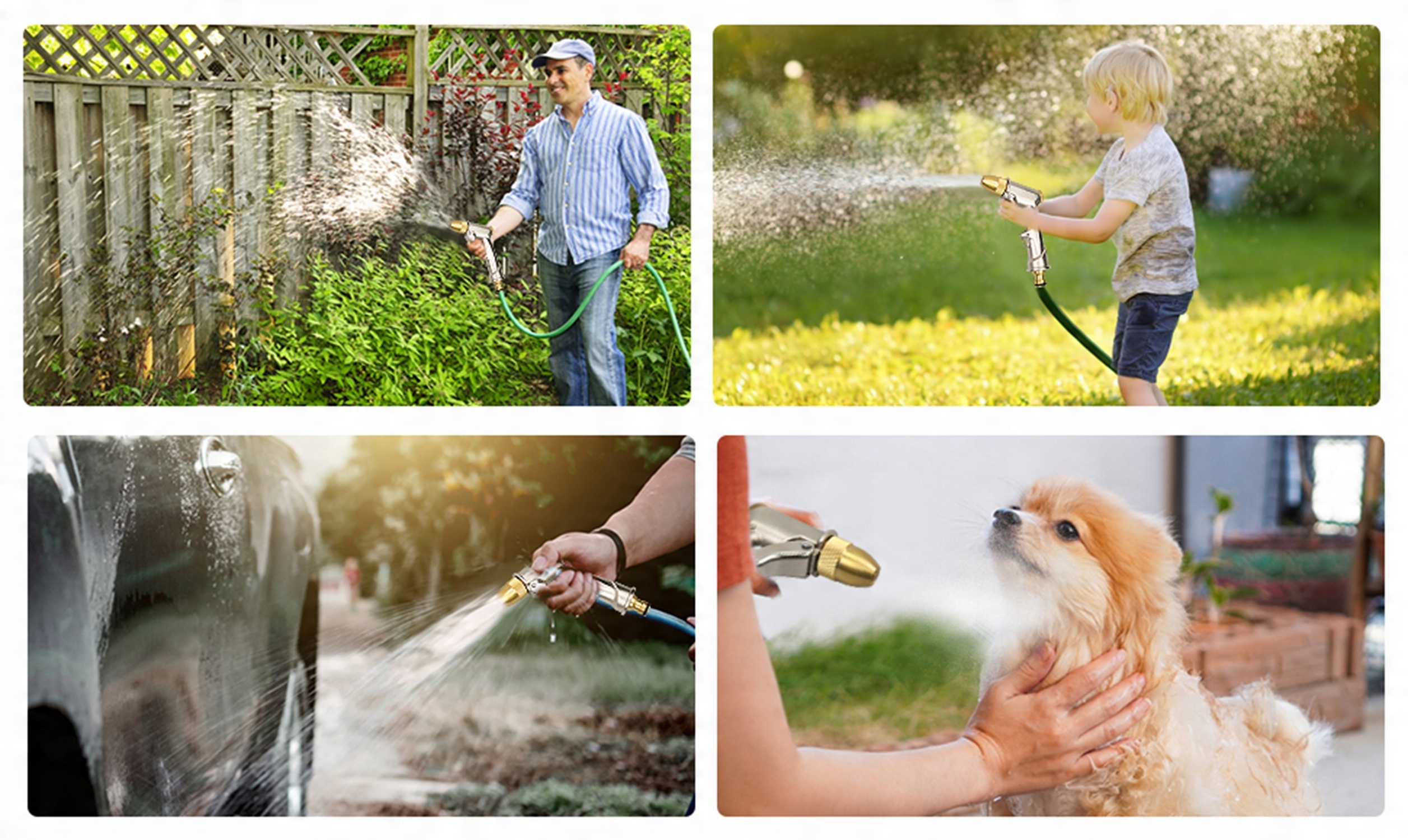4 режима орошения — для удовлетворения различных потребностей в орошении. 4 режима подачи воды за счет вращения головки насадки. Сначала отрегулируйте головку шайбы, а затем переходите к переднему гаечному ключу, именно тому, что ему нравится. Отлично подходит для автомобильной отделки, дорожек, двора, желобов, террас, дома и в любом месте с узорами.