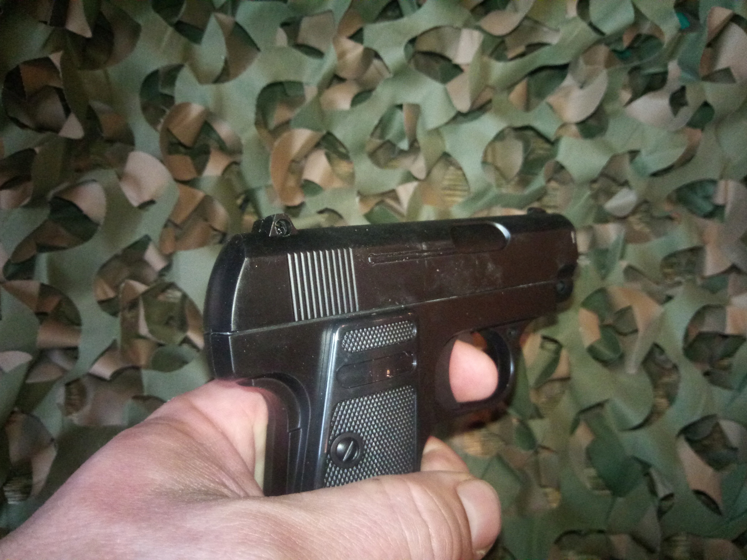 Реплика в основном сделана из металла. Из пластика сделаны только накладка рукоятки и магазин. Весь корпус пистолета выполнен из металла.