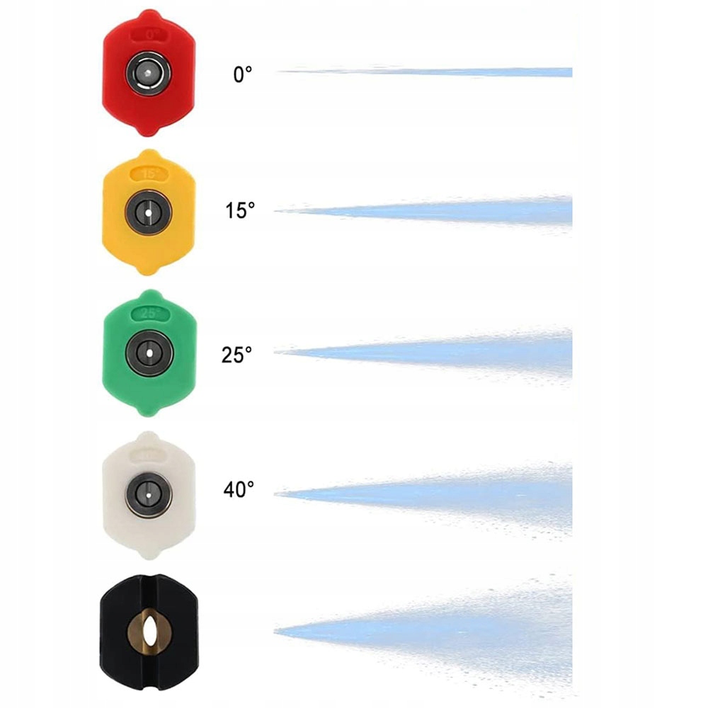 - 5 насадок для пены высокого давления Набор пистолетов создает различные углы очистки, что делает их идеальными для очистки различных поверхностей, таких как автомобили, стены и окна.