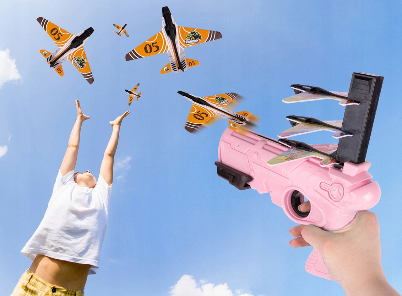 Запускаемые самолеты полностью безопасны, поэтому ваш малыш может без опаски играть с пистолетом. Идеальное решение, чтобы провести время, в том числе с друзьями. Продукт доставляет удовольствие, но также учит концентрации и развивает моторику и координацию движений ребенка. Идеально подходит для обучения стрельбе по мишеням. Дальность запускаемого самолета – от 3 метров до даже 5 метров!