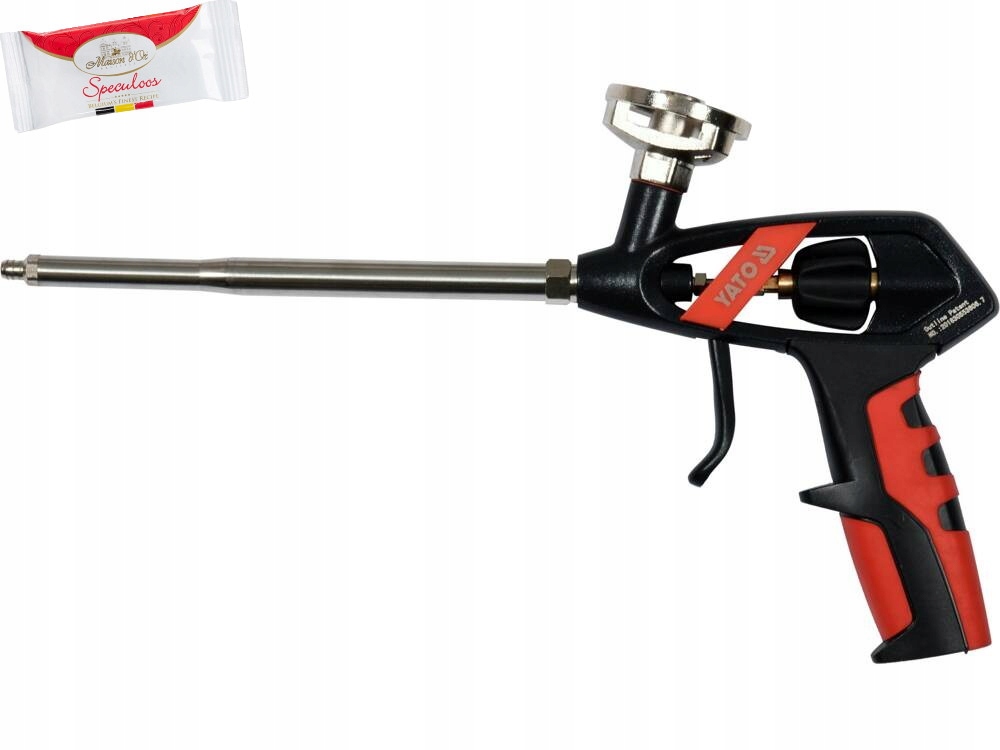 Пистолет для пенополиуретана, корпус из литого алюминия. Особенностью этого пистолета является эргономичная ручка регулировки подачи пены, расположенная таким образом, что ее можно регулировать одной рукой во время подачи пены. В традиционном оружии для регулировки используются обе руки. Ручка покрыта двухкомпонентным пластиком. Главный клапан содержит шарик из ПТФЭ, обеспечивающий исключительную герметичность и долговечность пистолета. Для точного нанесения пены из обычных завинчивающихся контейнеров.
