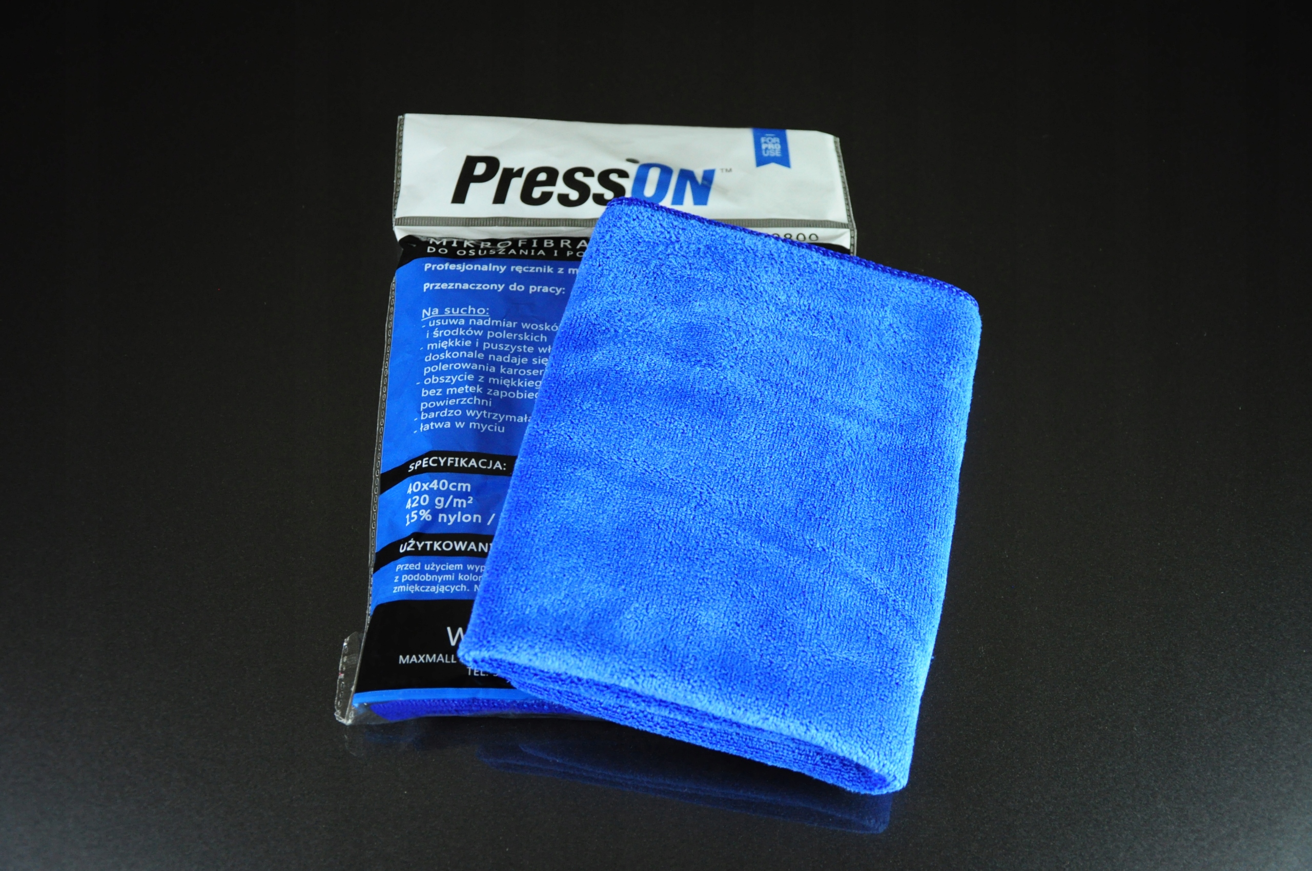 Комплект также включает в себя профессиональное полотенце из микрофибры presson с размерами 40x40см и толщиной 420 г/м2 , посвященной в основном для компаний, занимающихся автомобилями и очисткой.