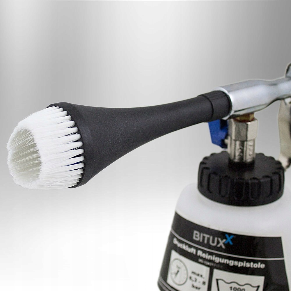С помощью этого очищающего пистолета вы можете легко удалить постоянную грязь и загрязнение с любой поверхности, даже самые маленькие зазоры в дверях и окнах или в автомобильном секторе не будут проблемой. Эффект очистки вызван смесей воздуха / жидкости, которая производится под давлением. Полученная в этой смеси обеспечивает оптимальную очистку. Идеальная очистка в промышленности, ремеслах и автомобильном секторе.