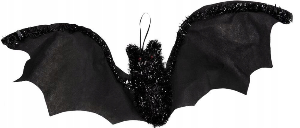 Большая черная летучая мышь. Подвесное украшение. Края крыльев и туловища летучей мыши имеют декоративную блестящую отделку. Оригинальное украшение для вечеринок на Хэллоуин, тематических вечеринок, страшное украшение дома. Размеры летучей мыши 81х23 см.
