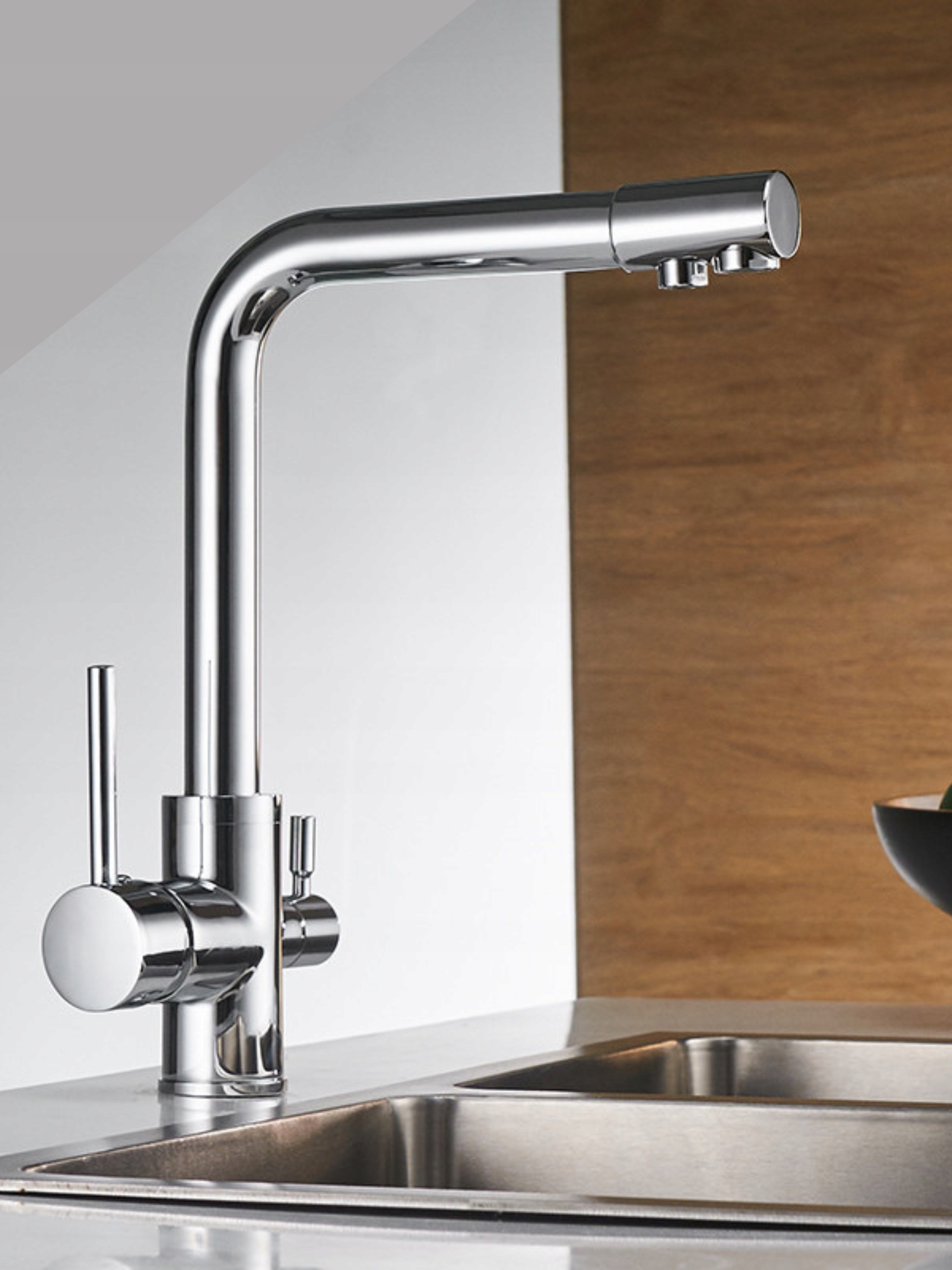 - Элегантный взгляд делает фильтр гармонично смешиваться в окружающую среду, становясь частью кухонного оборудования. Время.