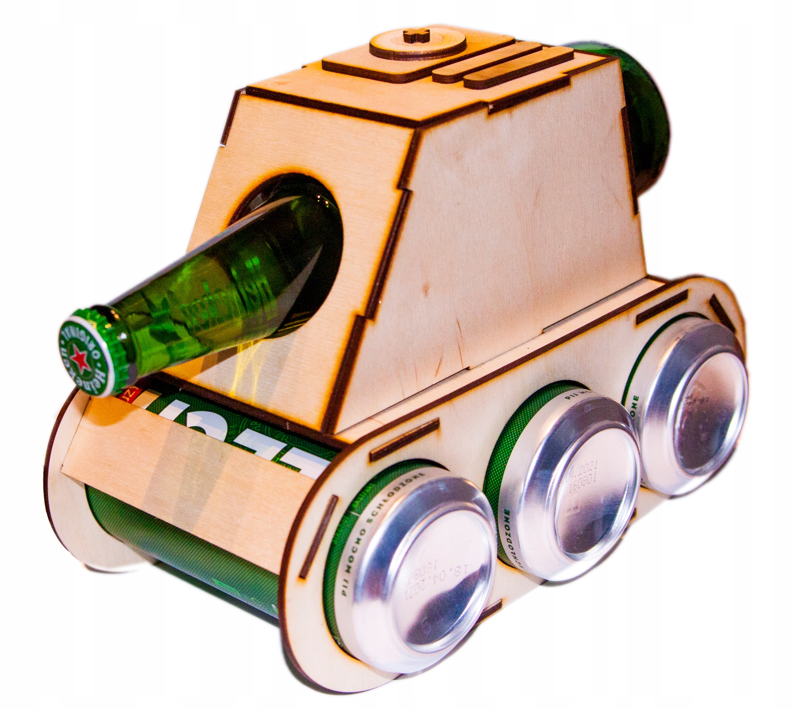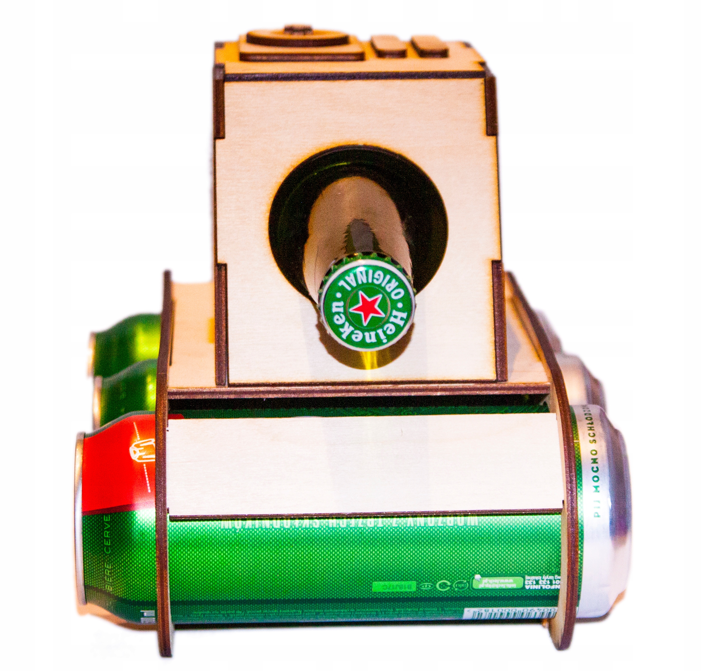 В нашем резервуаре мы адаптировали его структуру для размещения 3 банок пива и одной бутылочка, которая "играет" роль LUFA!