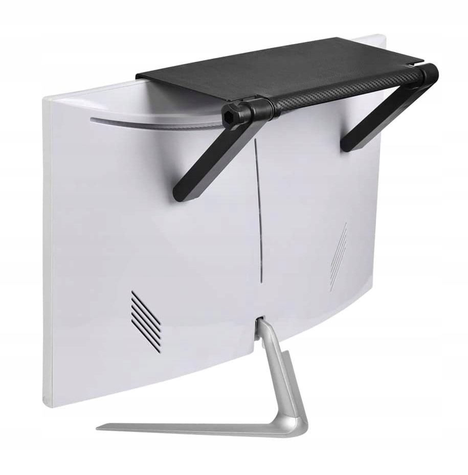Удобная компактная полка, предназначенная для установки на верхнюю часть рамы телевизора или ЖК-монитора. Это позволяет разумно сэкономить место на столе и столе. Очень простая и неинвазивная установка предотвращает повреждение оборудования. Регулируемая ручка позволяет менять угол наклона полки и подогнать ее к задней части экрана. Отличный гаджет, позволяющий удобно хранить пульт от телевизора или другие мелкие предметы.