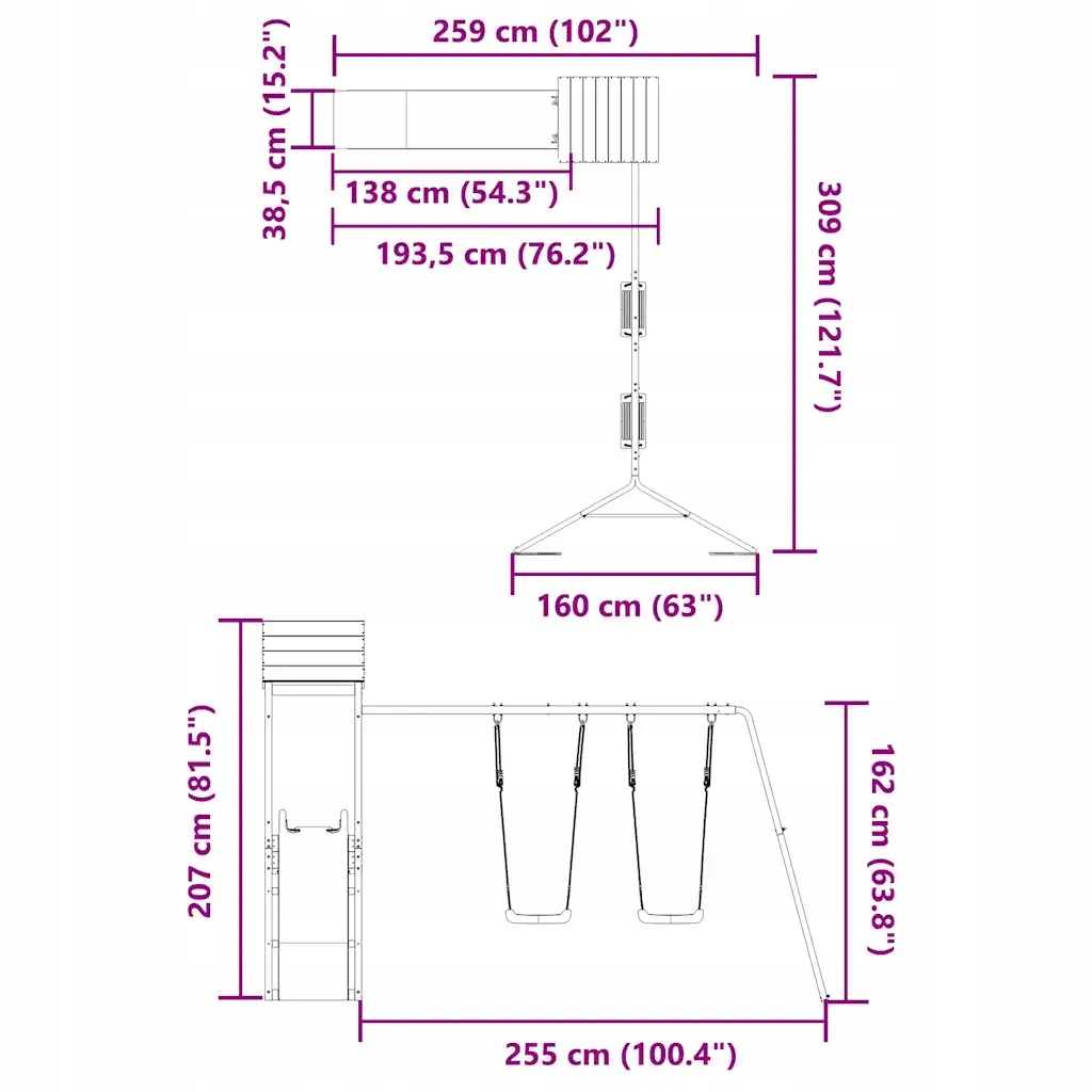 Вы хотите позволить своим детям свободно играть дома? Этот деревянный набор превратит ваш двор в детскую площадку для творческих приключений! Сплошная сосна - это красивый, натуральный материал. Он имеет простую структуру банки, а узлы придают ему уникальный, деревенский характер. Пропитка - это процесс обслуживания, проводимый с использованием автоклавов. Обработка давления увеличивает сопротивление маслам и коэффициентам погоды. Кроме того, скобки -формы гарантируют баланс структуры.