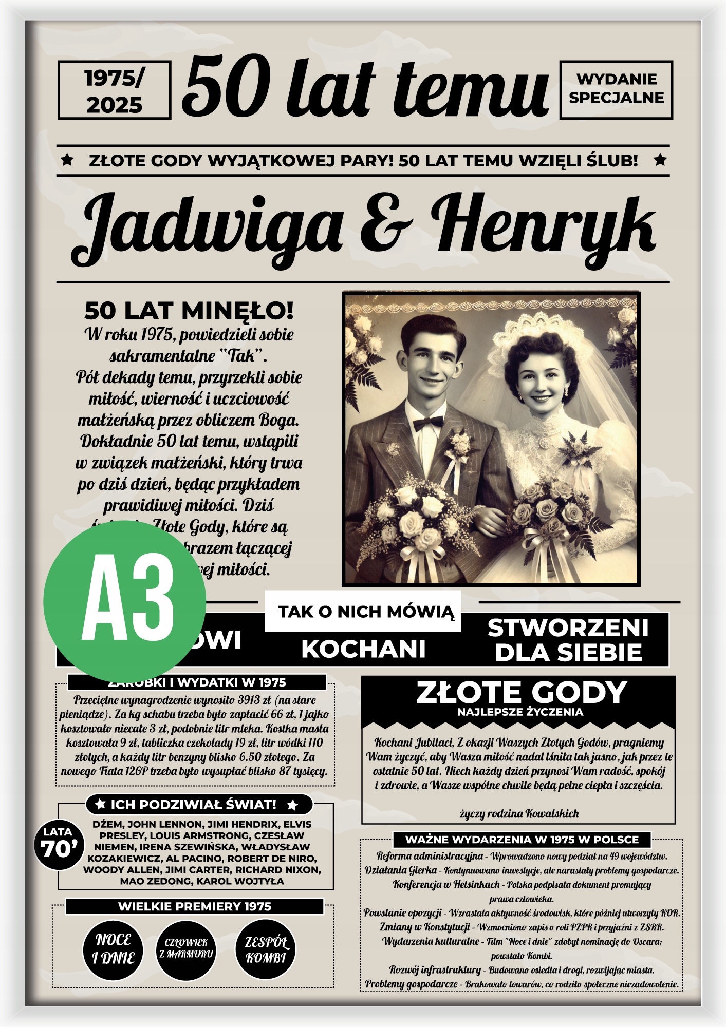 PLAKAT A3 RAMKA ZŁOTE GODY PERSONALIZOWANY PREZENT PAMIĄTKA ZDJĘCIA IMIONA