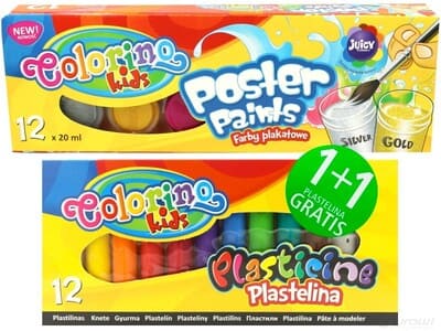 Colorino Kids - Плакат. У них сильные, выразительные цвета. После сушки краска на картинке матовая, она имеет интенсивные цвета, которые устойчивы к свету и истиранию. Краски имеют высокое качество, идеально распространяемые на различных субстратах, например, бумага, коробка, дерево, керамика, камень. Пластинин деликатный на ощупь и легко моделировать. Это не придерживается рук. Подходит для многократного использования. Подходит для выполнения многих работ, включая Маленькие и крупные модели, узоры, вырезая плесень, создавая изображения, потирая пальцами, а также для терапевтических упражнений