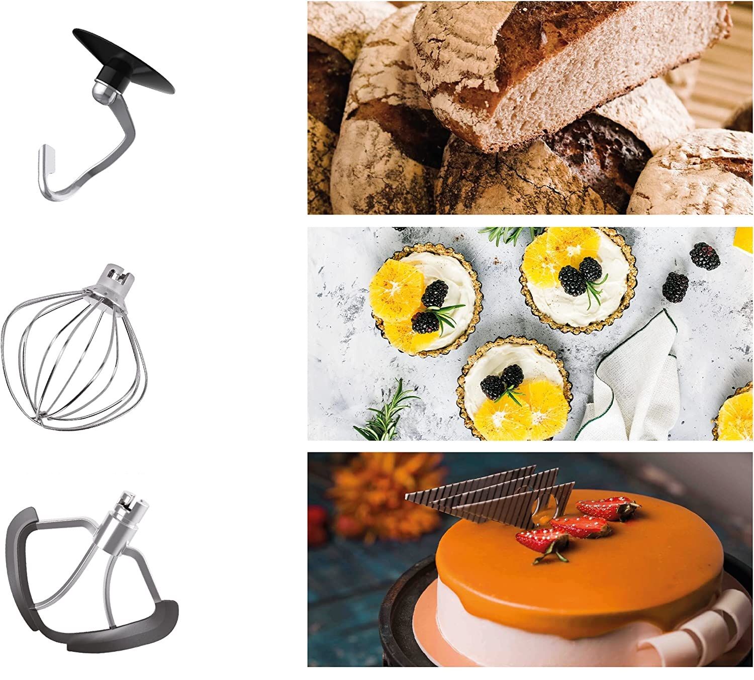 3 вида специальных насадок: крючок, миксер с силиконовыми полосками, венчик.