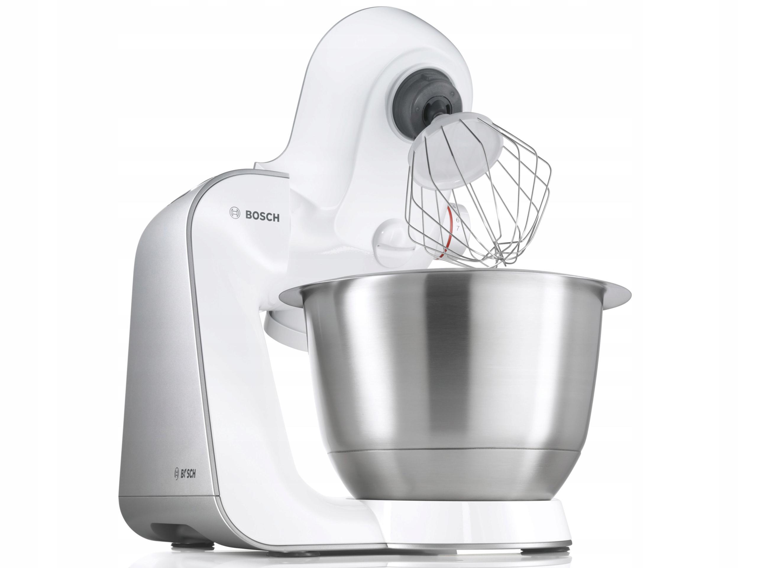 Много -функциональная кухонная работа Bosch в белом с мощностью 1000 w b>. Устройство имеет 7 скоростей и 2 чаши в наборе - изготовленные из нержавеющей стали и дополнительного пластика. Оборудование включает, среди прочего: измельчитель, шлифовальный аппарат, чашка и цитрусовая соковыжималка.