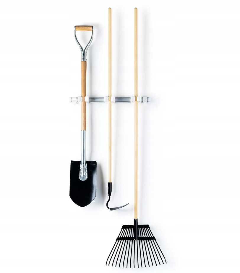 Полоска длиной 54 см с тремя держателями для ручек диаметром 15-35 мм. Крепится к стене с помощью прилагаемых дюбелей и шурупов.