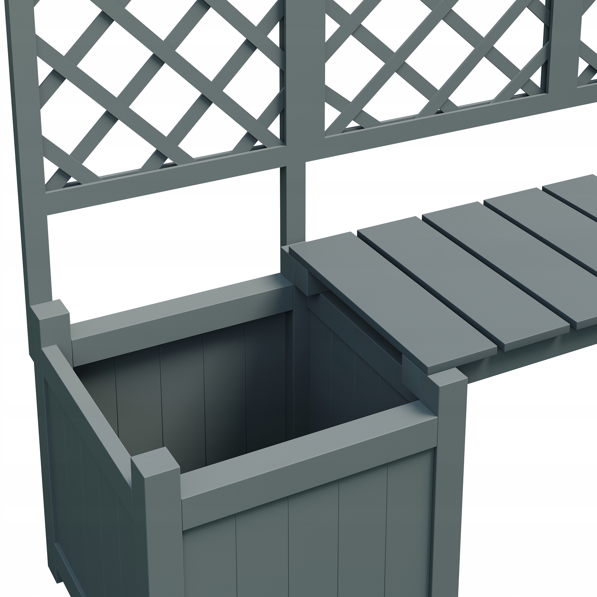 горшок, горшок с решеткой решетки в качестве помощи, чтобы подняться, горшок с большим пространством, цветочная коробка, коричневая твердая древесина, кастрюль с решеткой и сиденьем в саду на террасе