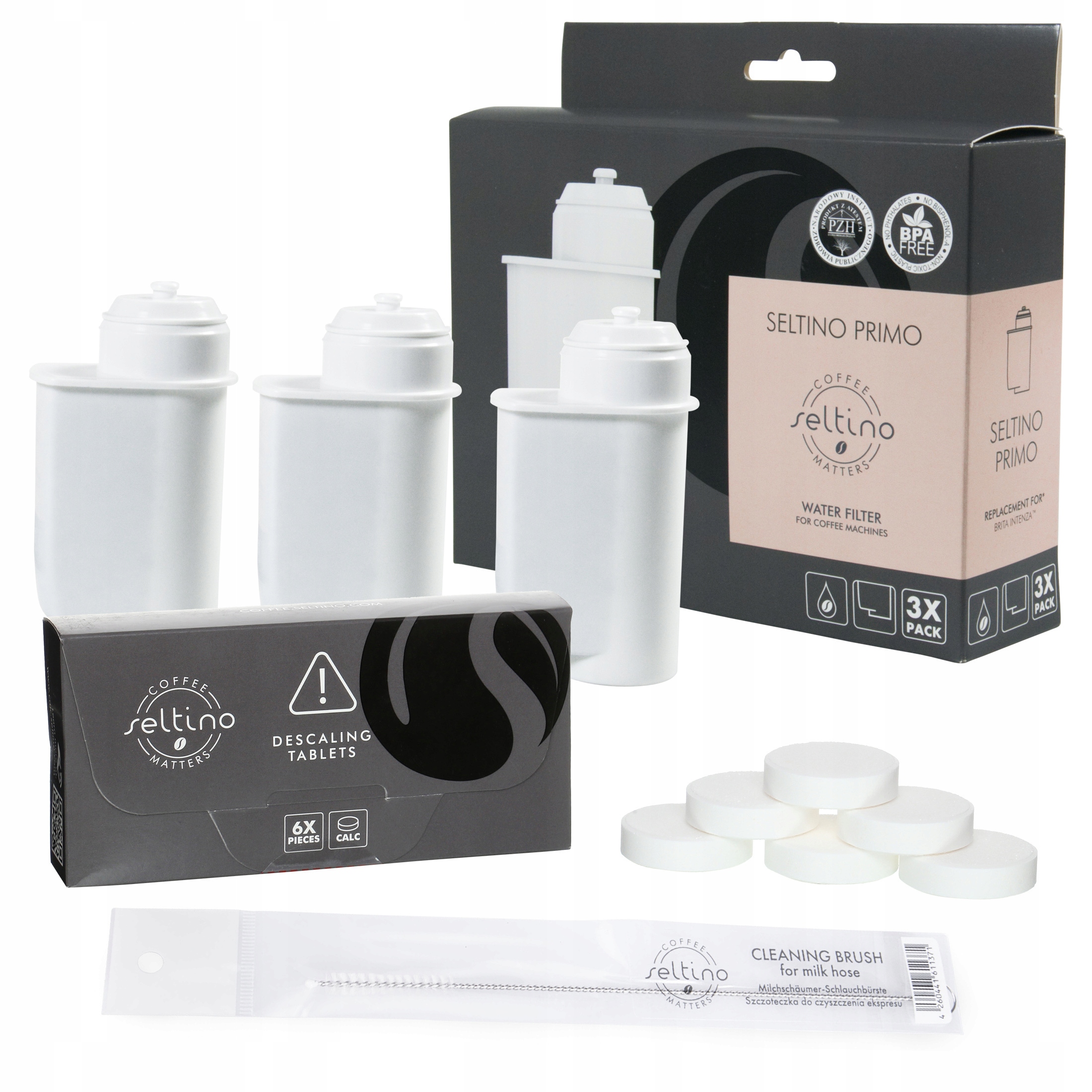 Фильтр Seltino Primo как полноценная замена фильтра Brita Intenza TZ70003 поддерживает ежедневная эксплуатация кофемашины. Высочайшее качество воды мы обязаны дополнительным компонентам фильтрации. Наличие активированного угля на основе скорлупы кокосового ореха отвечает за очистку воды от тяжелых металлов и химических примесей, а ионообменная смола удерживает ионы кальция и магния, заменяя их ионами натрия, благодаря чему фильтр смягчает воду и задерживает образование накипи в кофемашине, что продлевает срок ее службы.