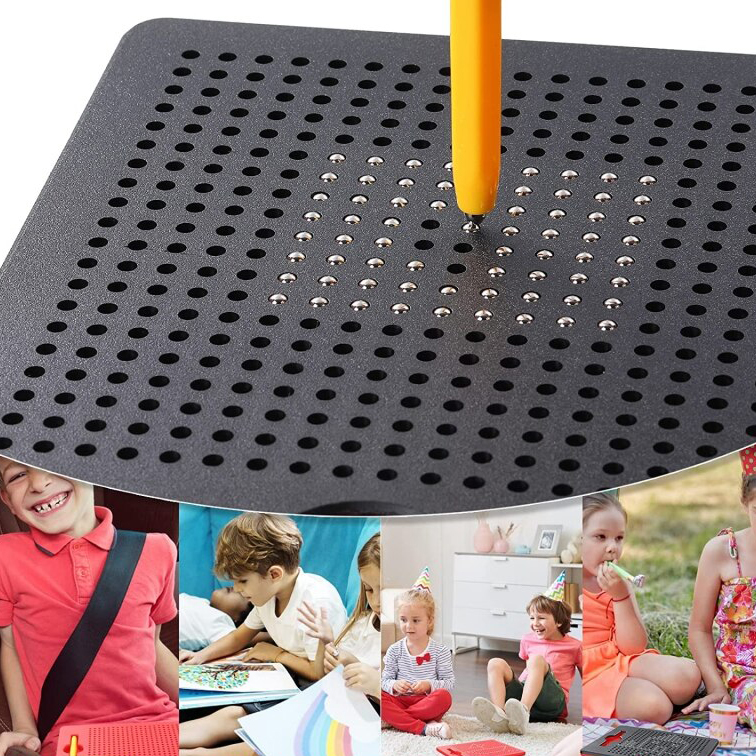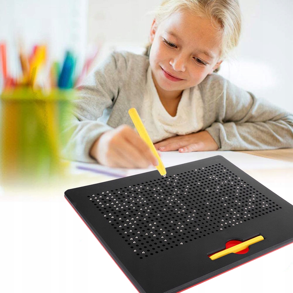Магнитный планшет — идеальная игрушка для вашего ребенка, которая займет его на долгие часы! Доска чрезвычайно проста в использовании. С помощью стилуса и шариков можно создавать бесконечное количество картинок. Все это можно стереть одним жестом. Свойства массива никогда не иссякнут, его не нужно включать или пополнять.