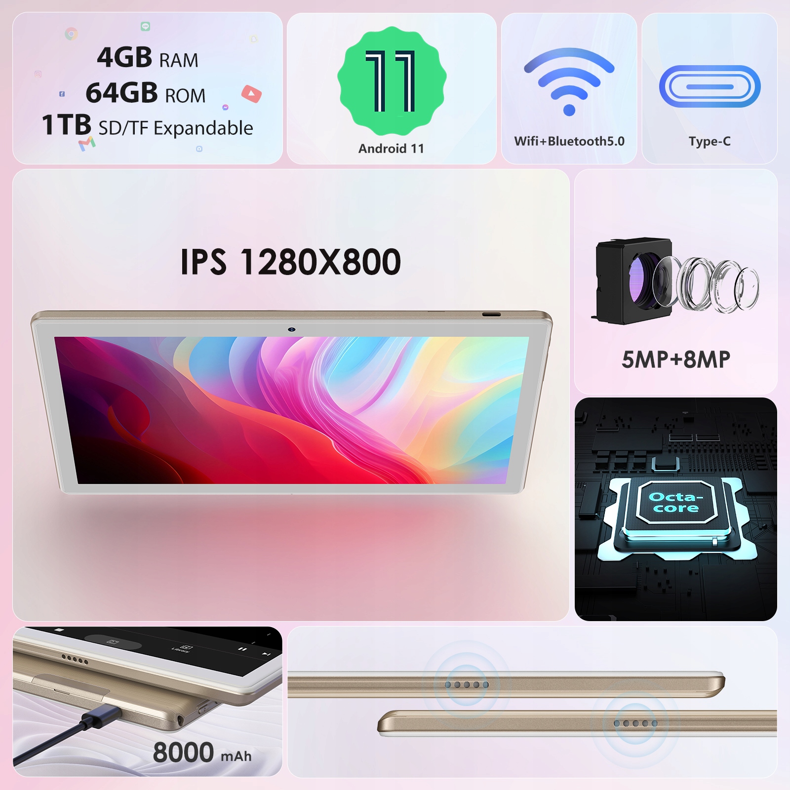 Планшет 10,1 дюйма, 4 ГБ+64 ГБ, восьмиядерный процессор, Android 11.0, Wi-Fi, 1280*800