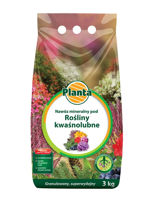 Минеральное удобрение Планта для кислолюбивых растений – многокомпонентное минеральное удобрение, предназначенное для применения под все кислолюбивые растения, выращиваемые на приусадебных участках и приусадебных участках, а также в различных типах контейнеров и ящиков. . Удобрение содержит оптимальный состав минералов и питательных веществ, соответствующий специфическим потребностям в питании широкого спектра кислотолюбивых растений. Формула гранулированного удобрения характеризуется высокой эффективностью удобрения, обеспечивая культурам полноценное питание на протяжении всего вегетационного периода.