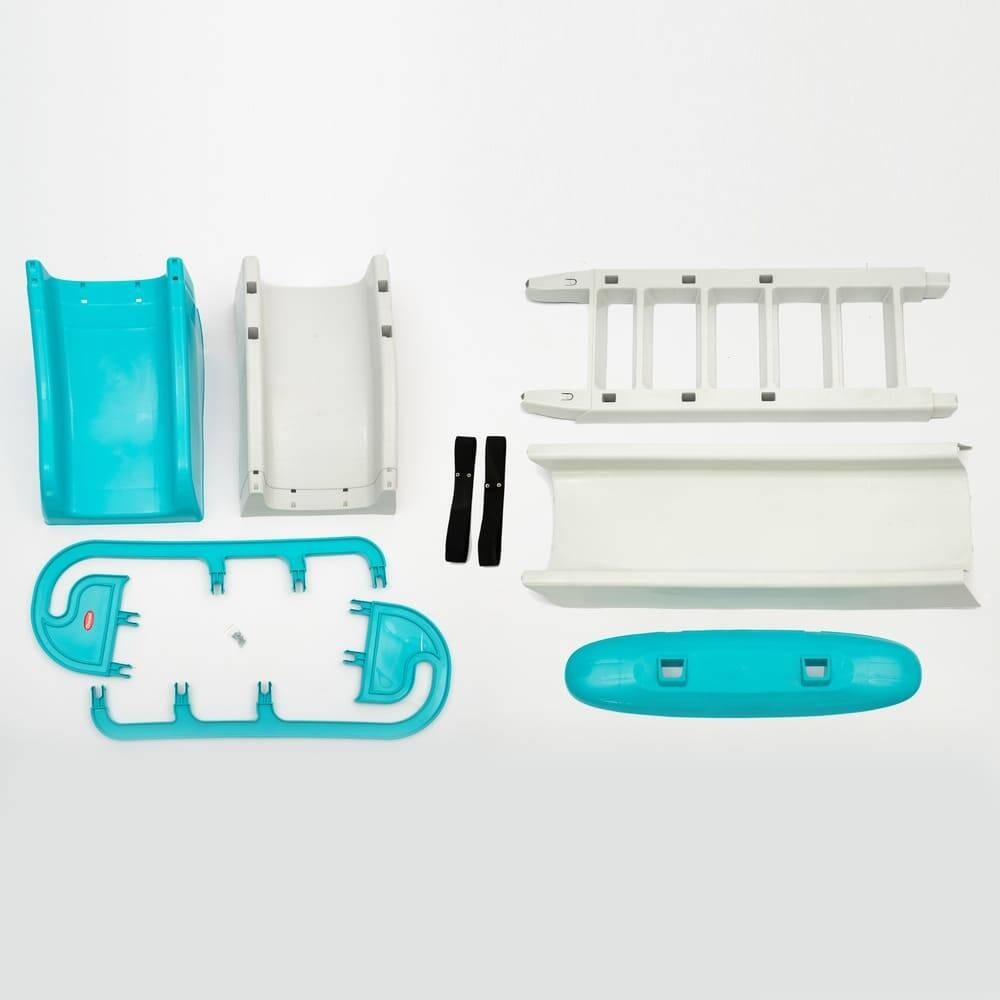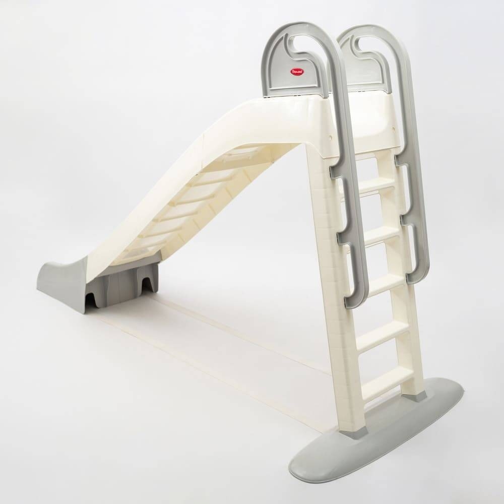 Конструкция слайда изготовлена из прочного и прочного пластика, что делает его устойчивым к повреждениям и обеспечивает долгие годы использования. Лестница фиксируется специальными ручками, что гарантирует безопасность при подъеме.