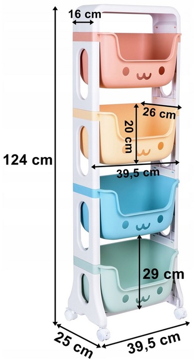 Красочная и практичная полка – идеальное решение поддержание порядка в комнате вашего ребенка. На полке, оснащенной 4 контейнерами, можно разместить множество игрушек. Благодаря колесам с тормозами передвигать шкаф становится проще. Пастельные тона полки идеально вписываются в детский интерьер. Материал гибкий и прочный пластик обеспечивает не только эстетику, но и функциональность. Кроме того, легко содержать в чистоте означает, что полку можно легко очистить влажной тканью.